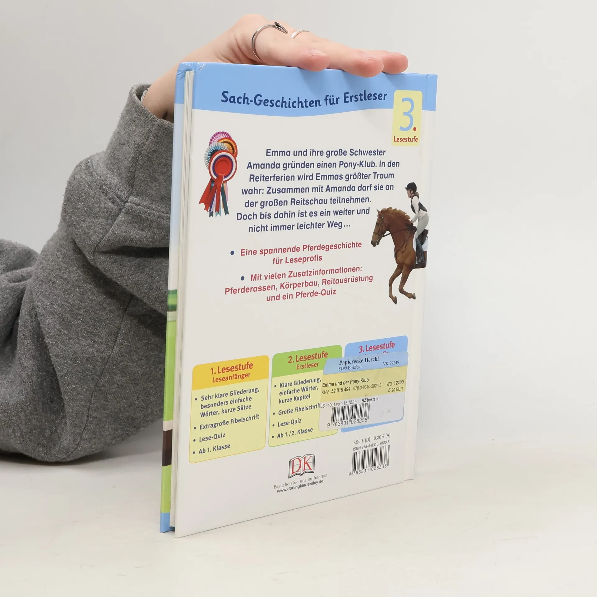 Emma und ihre große Schwester Amanda sind im Pony-Klub aktiv – und Feuer und Flamme, als es tatsächlich in die Reiterferien geht! In diesem Buch begleiten die Leser Emma bei ihren ersten Reiterlebnissen und erfahren, was man alles zum Reiten braucht. Die Superleser!-Bücher kombinieren das Beste aus Sach- und erzählendem Buch: Aufregende Geschichten werden durch interessante Hintergrundinformationen ergänzt – so kommt der Spaß, aber auch der Lerneffekt nicht zu kurz! Die Bücher gibt es in drei Lesestufen: für Leseanfänger in gelb, für Erstleser in grün und für Leseprofis in blau. Am Ende jedes Bandes gibt es ein Quiz mit Fragen zum Text sowie Hinweise und Tipps für Eltern, wie sie ihr Kind beim Lesen lernen bestmöglich unterstützen können. Die Sach-Geschichten der dritten Lesestufe sind für Kids ab der zweiten und dritten Schulklasse perfekt geeignet. Auf jeweils 128 Seiten gibt es spannende Geschichten in Fibelschrift und mit vielen Bildern – tolles Lesefutter für Leseprofis! Dieses Buch ist bei Antolin. de verfügbar.