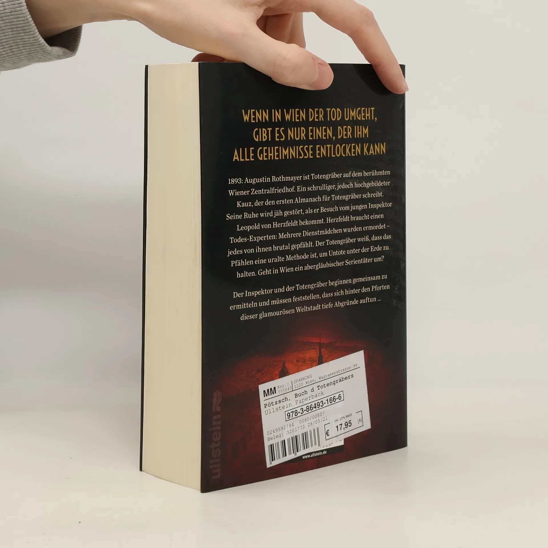 WENN IN WIEN DER TOD UMGEHT, GIBT ES NUR EINEN, DER IHM ALLE GEHEIMNISSE ENTLOCKEN KANN. 1893: Augustin Rothmayer ist Totengräber auf dem berühmten Wiener Zentralfriedhof. Ein schrulliger, jedoch hochgebildeter Kauz, der den ersten Almanach für Totengräber schreibt. Seine Ruhe wird jäh gestört, als er Besuch vom jungen Inspektor Leopold von Herzfeldt bekommt. Herzfeldt braucht einen Todes-Experten: Mehrere Dienstmädchen wurden ermordet ¿ jedes von ihnen brutal gepfählt. Der Totengräber weiß, dass das Pfählen eine uralte Methode ist, um Untote unter der Erde zu halten. Geht in Wien ein abergläubischer Serientäter um? Der Inspektor und der Totengräber beginnen gemeinsam zu ermitteln und müssen feststellen, dass sich hinter den Pforten dieser glamourösen Weltstadt tiefe Abgründe auftun.
