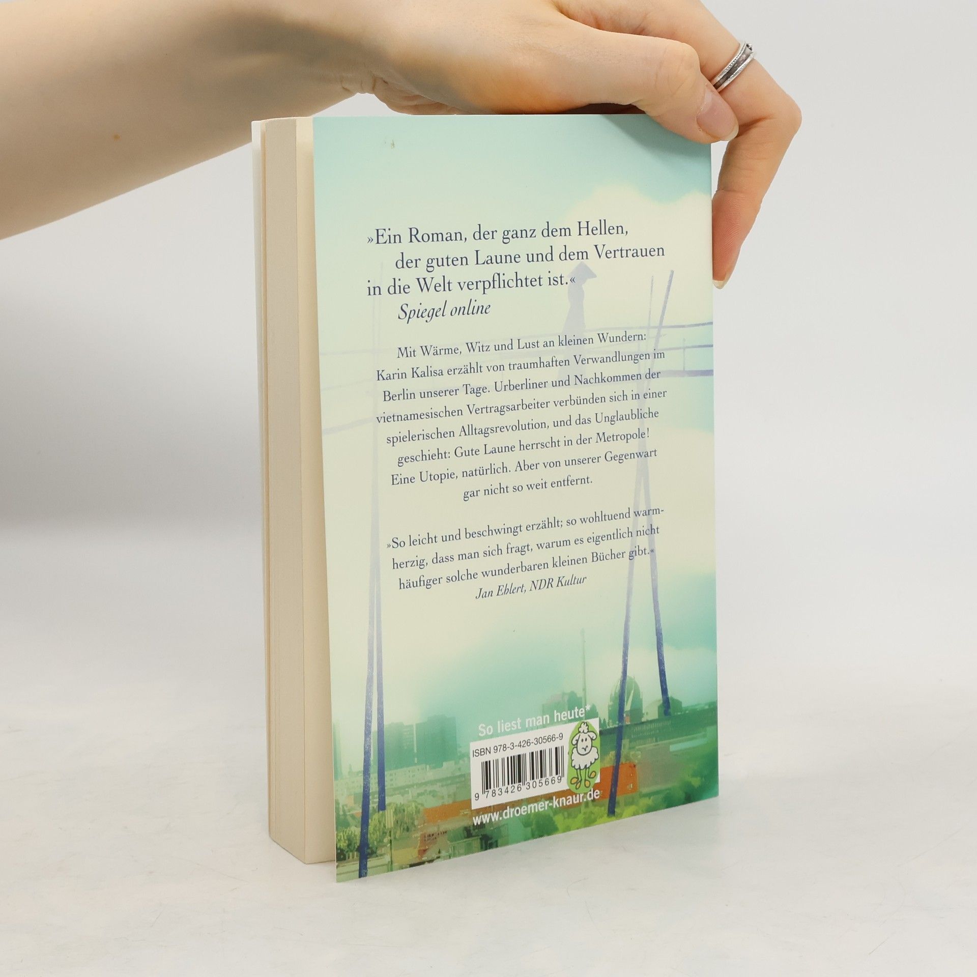 Der Bestseller von Karin Kalisa ist ein Sommer-Roman mit Tiefgang für jede Lebenslage. Mit Wärme, Witz und Lust an kleinen Wundern erzählt Karin Kalisa von traumhaften Verwandlungen im Berlin unserer Tage. Ausgehend vom kleinen vietnamesischen Laden des studierten Archäologen Sung nimmt eine Völkerverständigung der ganz eigenen Art ihren Lauf. Urberliner und Nachkommen der vietnamesischen Vertragsarbeiter verbünden sich in einer spielerischen Alltagsrevolution: Brücken aus Bambus spannen zwischen den Häusern, Parkwächter tragen Kegelhüte, auf Brachflächen grünt exotisches Gemüse, und ein Zahnarzt macht Sonntagsdienst für Patienten aus Fernost. Das Unglaubliche geschieht: Gute Laune herrscht in der Metropole! Eine Utopie, natürlich. Aber von unserer Gegenwart gar nicht so weit entfernt. „So leicht und beschwingt erzählt, so wohltuend warmherzig, dass man sich fragt, warum es eigentlich nicht häufiger solche wunderbaren kleinen Bücher gibt.“ Jan Ehlert, NRD Kultur
