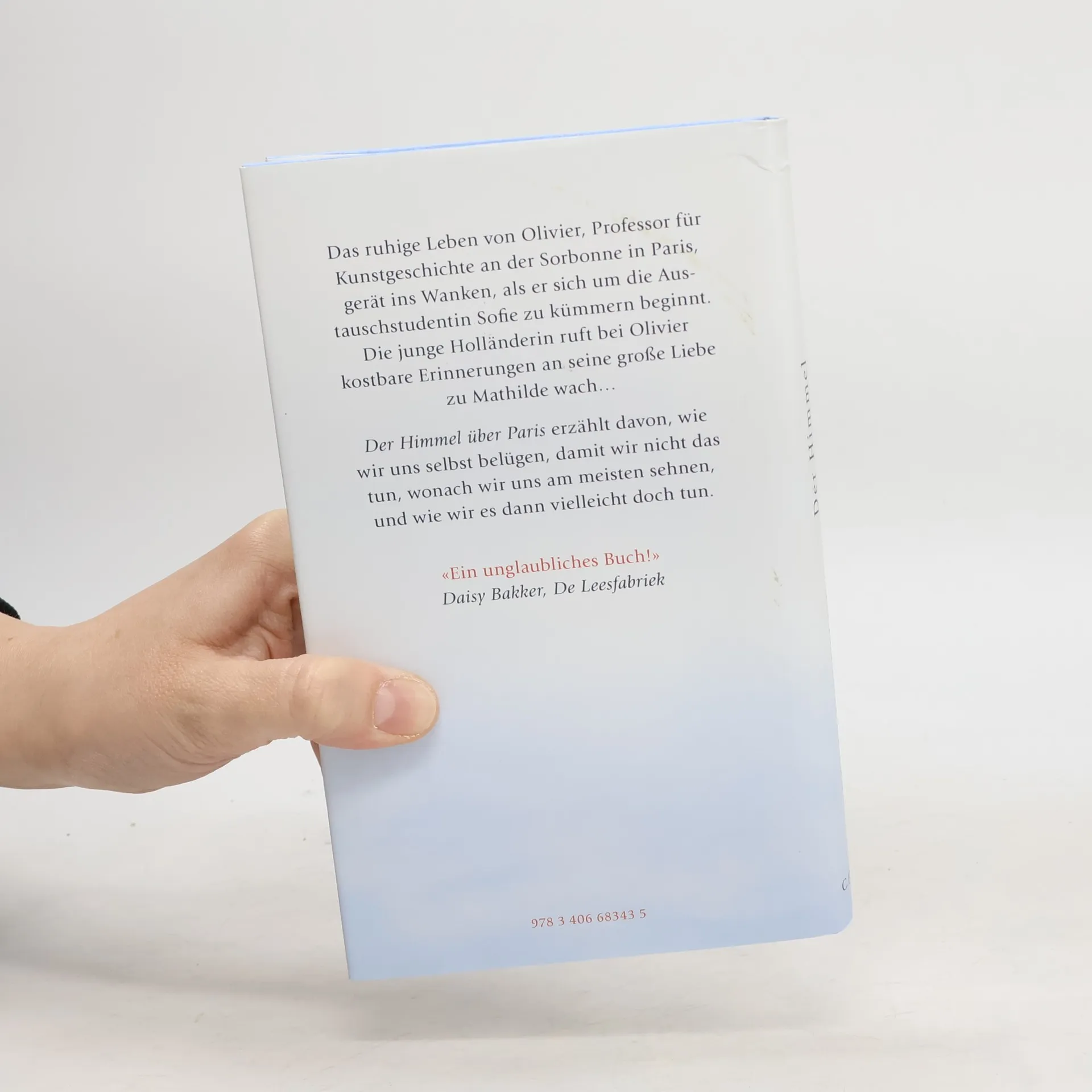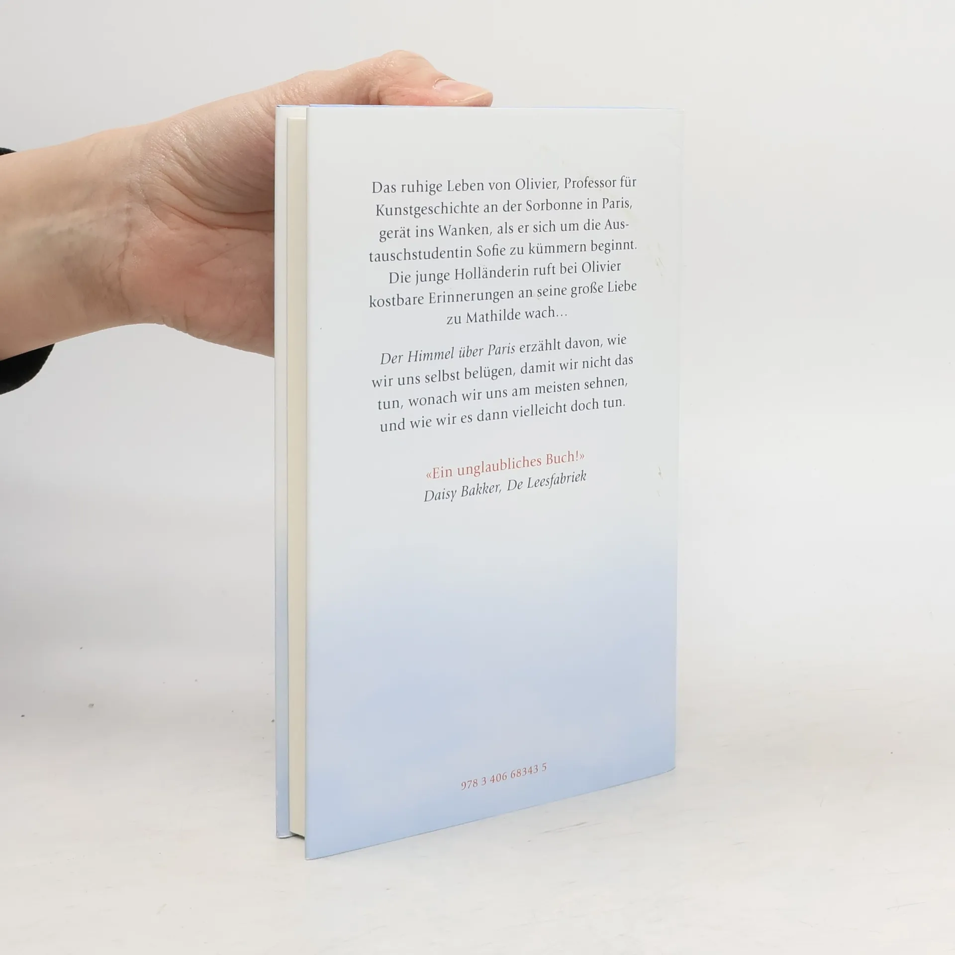 „Der Himmel über Paris“ erzählt davon, wie wir uns selbst belügen, damit wir nicht das tun, wonach wir uns am meisten sehnen – und wie wir es dann vielleicht doch tun. Das gut eingerichtete Leben von Olivier, Professor für Kunstgeschichte an der Sorbonne in Paris, gerät ins Wanken, als sein Chef ihn bittet, sich um die Austauschstudentin Sofie zu kümmern. Die junge Niederländerin ruft bei Olivier kostbare Erinnerungen an seine große Liebe zu Mathilde wach, die er eigentlich hatte vergessen wollen. Obwohl sein Verstand ihn warnt, macht er einen Annäherungsversuch und rät der Studentin zu etwas, wozu er selbst nie den Mut gehabt hat. Sofie ringt mit einer schwierigen Wahl: nach dem Größten zu streben und daran zugrunde zu gehen – oder gar nicht erst zu beginnen, aus Angst vor dem Scheitern. Entschlossen stellt sie sich ihrer Lebensangst und fordert Olivier dazu auf, dasselbe zu tun. Das bezaubernde und kluge Debüt einer jungen niederländischen Autorin.