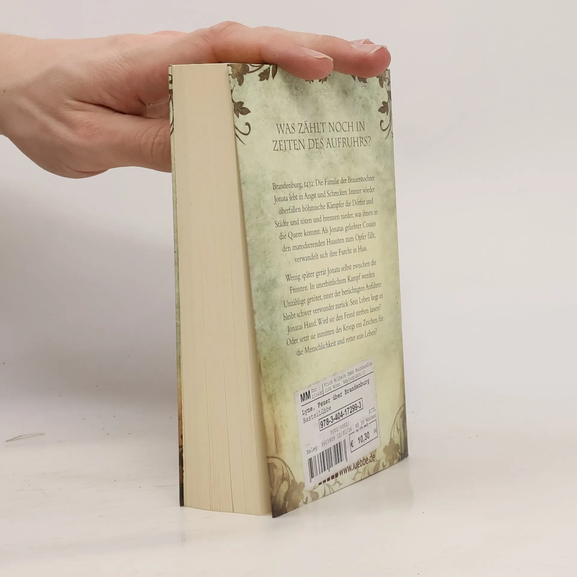 Brandenburg, 1432: Die Familie der Brauerstochter Jonata lebt in Angst und Schrecken. Immer wieder überfallen böhmische Kämpfer die Dörfer und Städte und töten und brennen nieder, was ihnen in die Quere kommt. Auch Jonatas geliebter Cousin fällt den marodierenden Hussiten zum Opfer, und ihre Furcht verwandelt sich in Hass. Als es bei Müllrose zum Kampf kommt und einer der berüchtigten Krieger verletzt wird, muss die junge Frau sich entscheiden: Wird sie den Feind sterben lassen? Oder setzt sie ein Zeichen für die Menschlichkeit inmitten des Kriegs und rettet sein Leben?