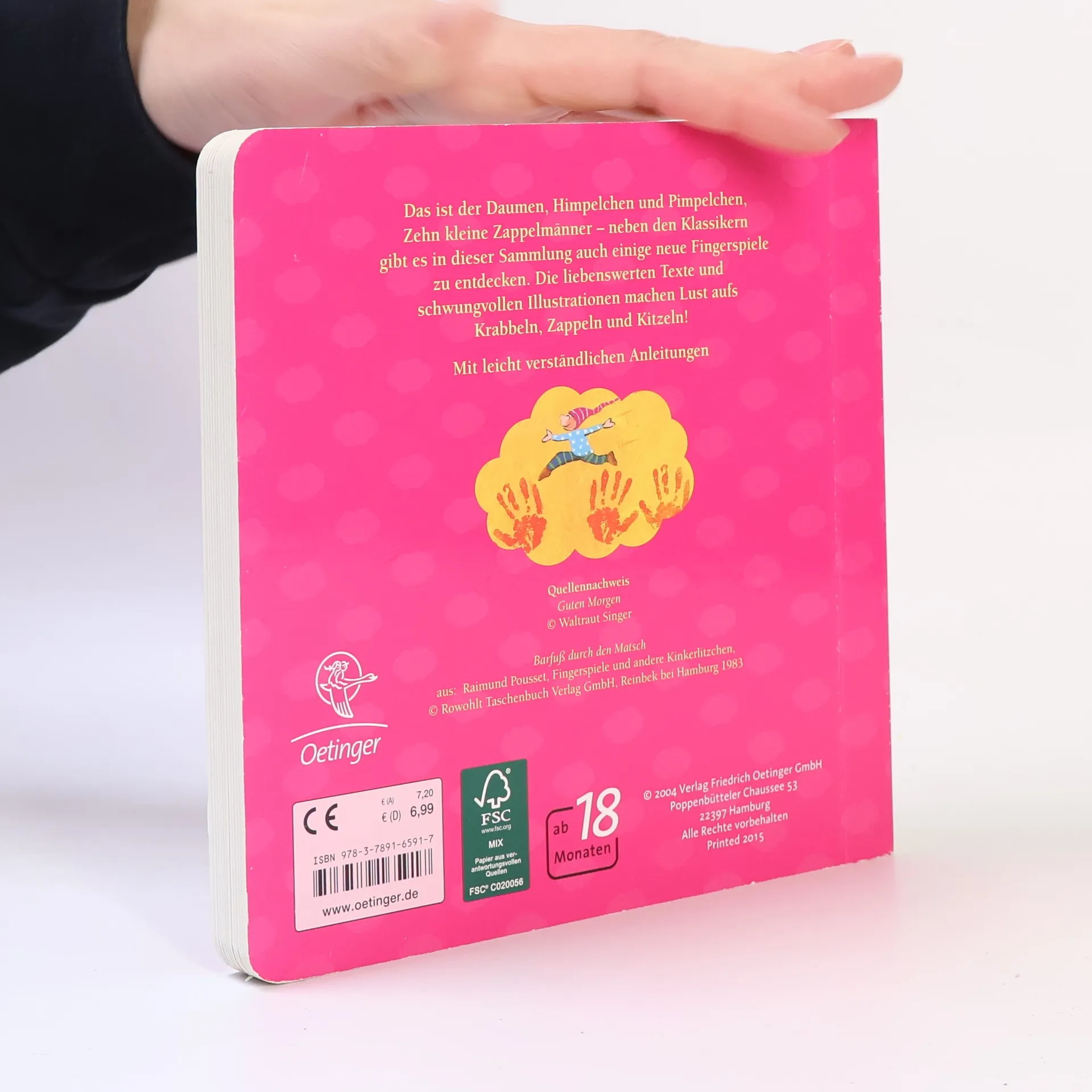 Gute-Laune-Tipp! Das große Quatschmach-Reime-Buch „Eene mene mink tank!“ oder „Zehn kleine Zappelmänner!“: Kinder kennen und lieben die kurzen lustigen Verse, die manchmal auch reiner Nonsens sind. 28 der beliebtesten Kicherreime laden Eltern, Kinder und Erzieherinnen dazu ein, Finger- und andere Spiele zu spielen, Quatsch zu machen und Geräusche zu produzieren – Lachen garantiert! Außerdem dabei: „Eins, zwei, drei, vier, fünf, sechs, sieben, wo ist bloß mein Kind geblieben?“. „Eine kleine Dickmadam“, „Ilse Bilse, keiner willse“ u. v. a.