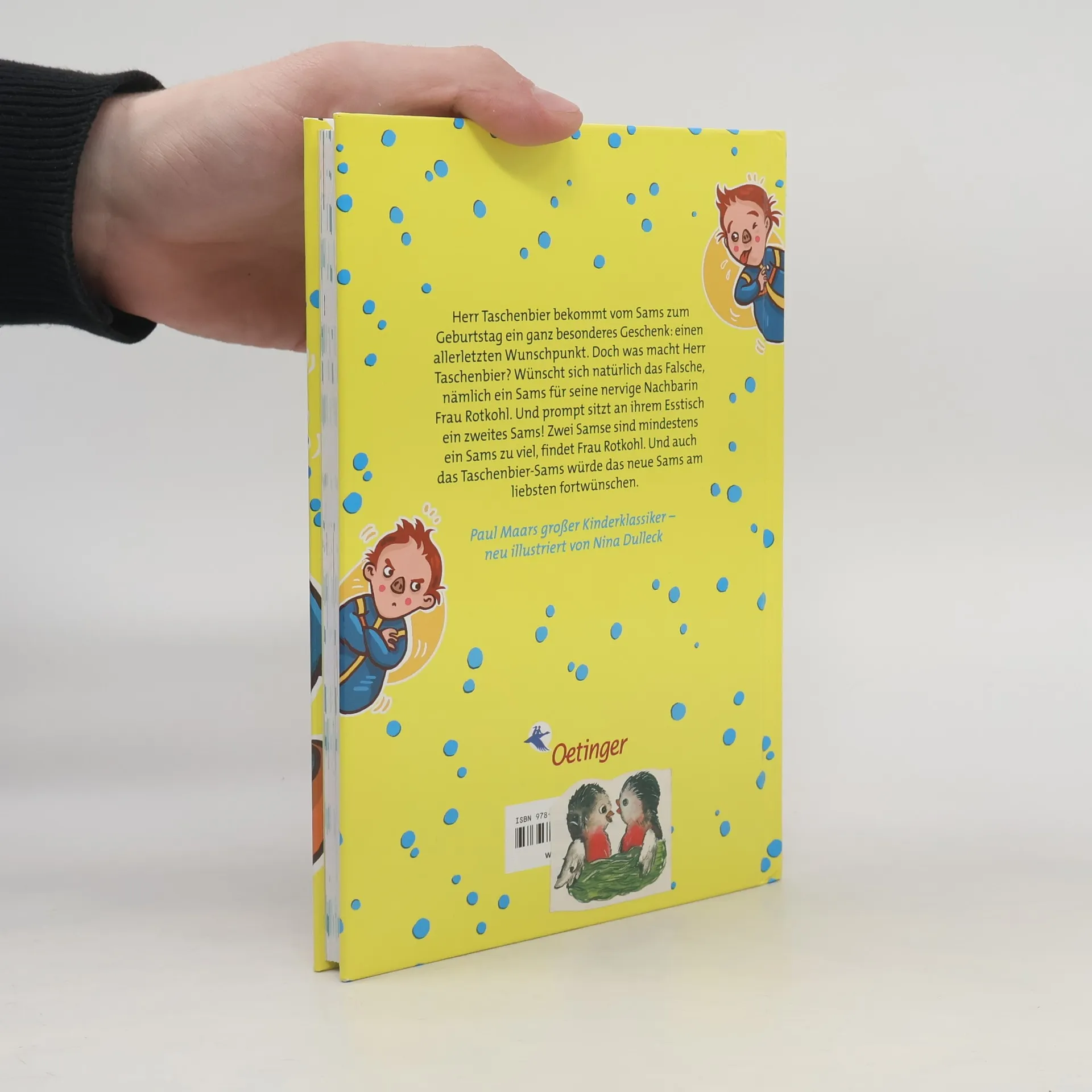 In "Ein Sams für Martin Taschenbier" erhält Herr Taschenbier von seinem Sams einen besonderen Wunschpunkt. Doch er wünscht sich ein zweites Sams für seine Nachbarin Frau Rotkohl, was zu unerwarteten Herausforderungen führt. Ein unterhaltsames Vorlesebuch von Paul Maar, neu illustriert von Nina Dulleck, für jüngere Kinder.