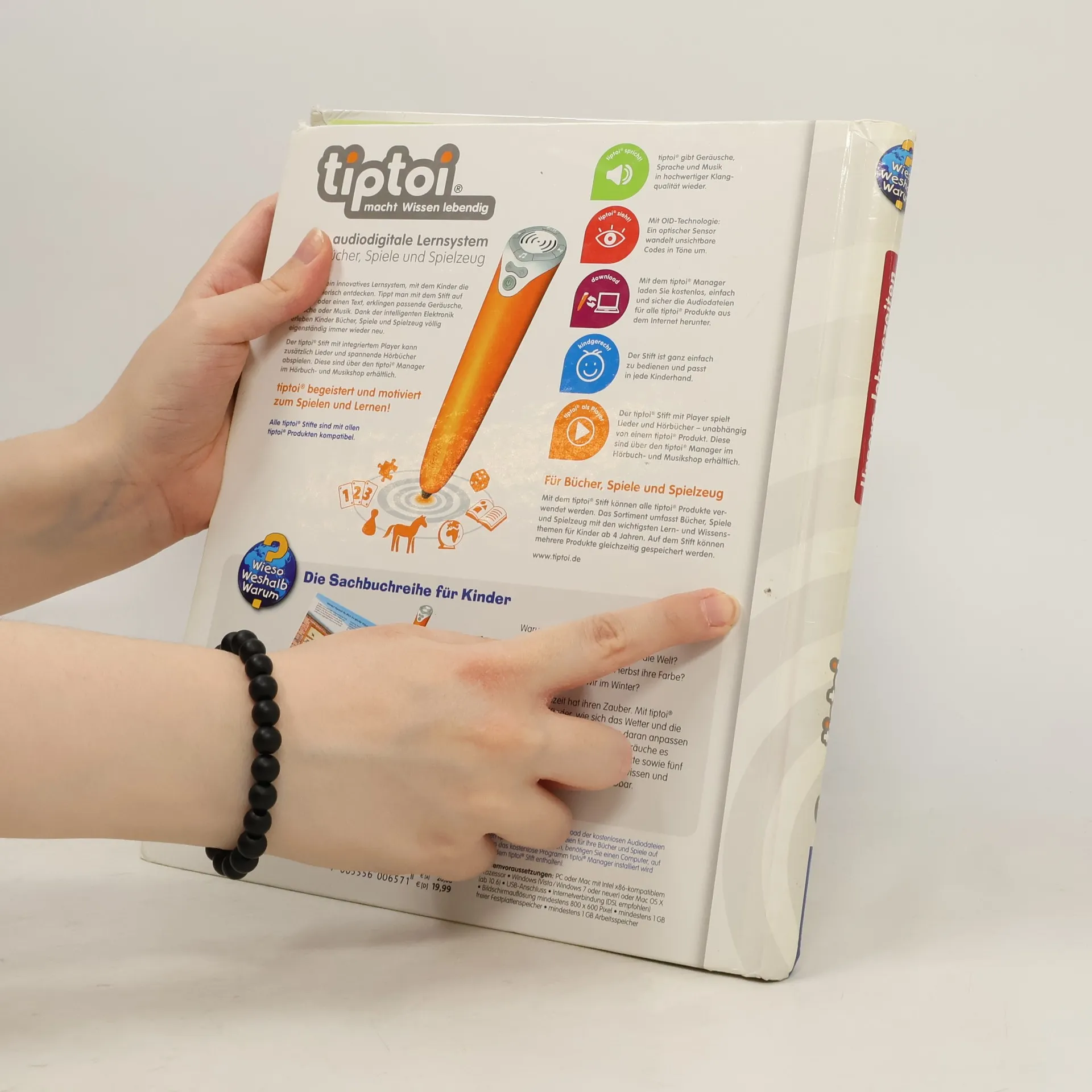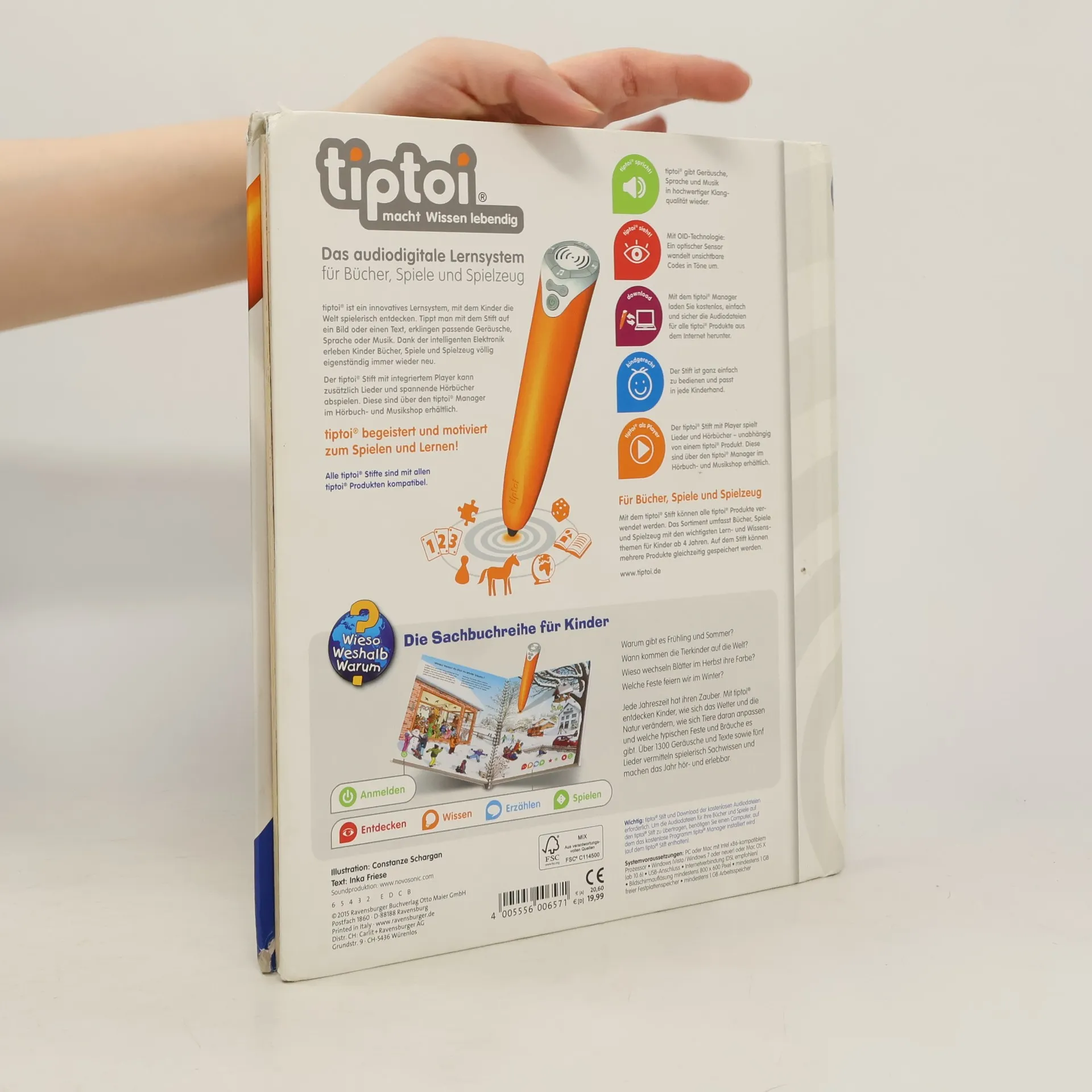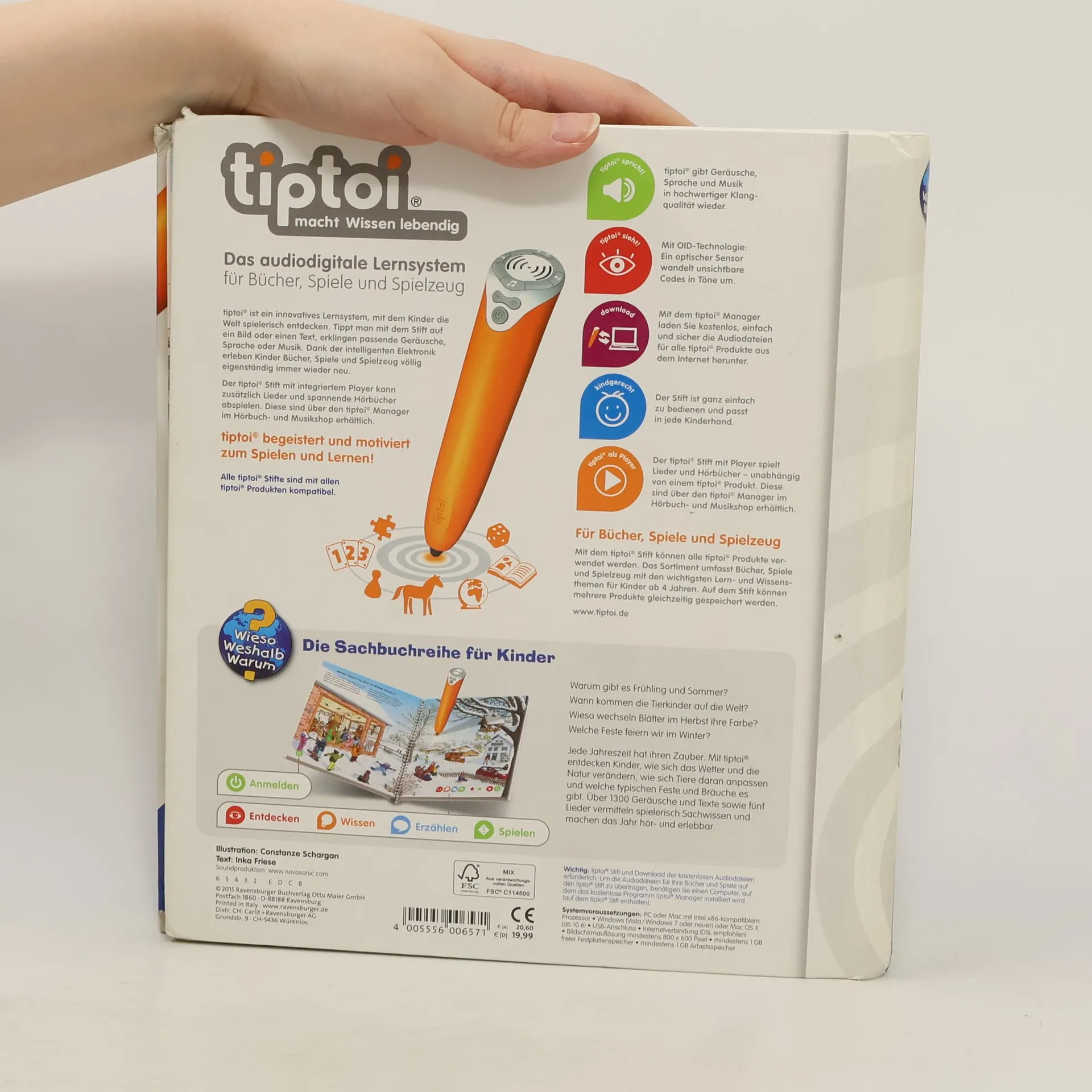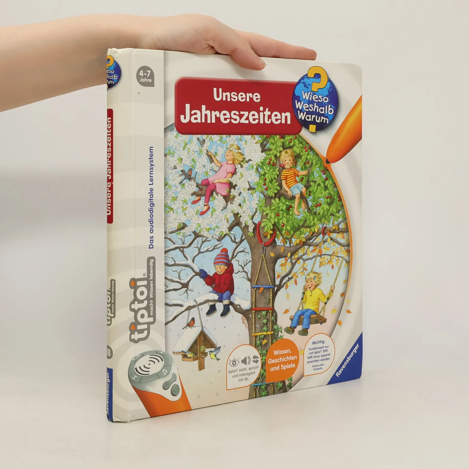 Frühling, Sommer, Herbst und Winter! Jede Jahreszeit hat ihren Zauber, ihre Geräusche und Lieder: Im Frühling sprießen die Bäume und die Vögel zwitschern um die Wette. Im Sommer zirpen die Grillen und summen die Bienen. Im Herbst erfüllen Kindergesänge und das Licht unzähliger Laternen die Straßen. Im Winter lockt knirschender Schnee Groß und Klein nach draußen. Authentische Geräusche, detailreiche Bilder und liebevolle Sachtexte und Dialoge lassen die Jahreszeiten auf neue Weise lebendig werden. Was macht der Traktor auf dem Feld? Wann kommt die Feuerwehr? Wie groß wird ein Pony? Die interaktive Sachbuchreihe tiptoi Wieso? Weshalb? Warum? beantwortet wichtige Kinderfragen auf Augenhöhe. Auf den liebevoll illustrierten Seiten tauchen die Kinder in eine Welt ein, die durch zahlreiche authentische Geräusche lebendig wird. Das Sachwissen wird altersgerecht erklärt und ist fachlich geprüft. Die Kinder können sich dank der einfachen und intuitiven Nutzung mit dem tiptoi-Stift das Wissen selbst erschließen. Sie lernen, Zusammenhänge zu begreifen und erfahren spannende Informationen über ihren Alltag und ihre Umwelt. Tolle Geschichten, Lieder und unterhaltsame Spiele laden dabei immer wieder zum selbstständigen Entdecken und Erforschen ein. tiptoi-Stift nicht enthalten. Muss separat erworben werden.