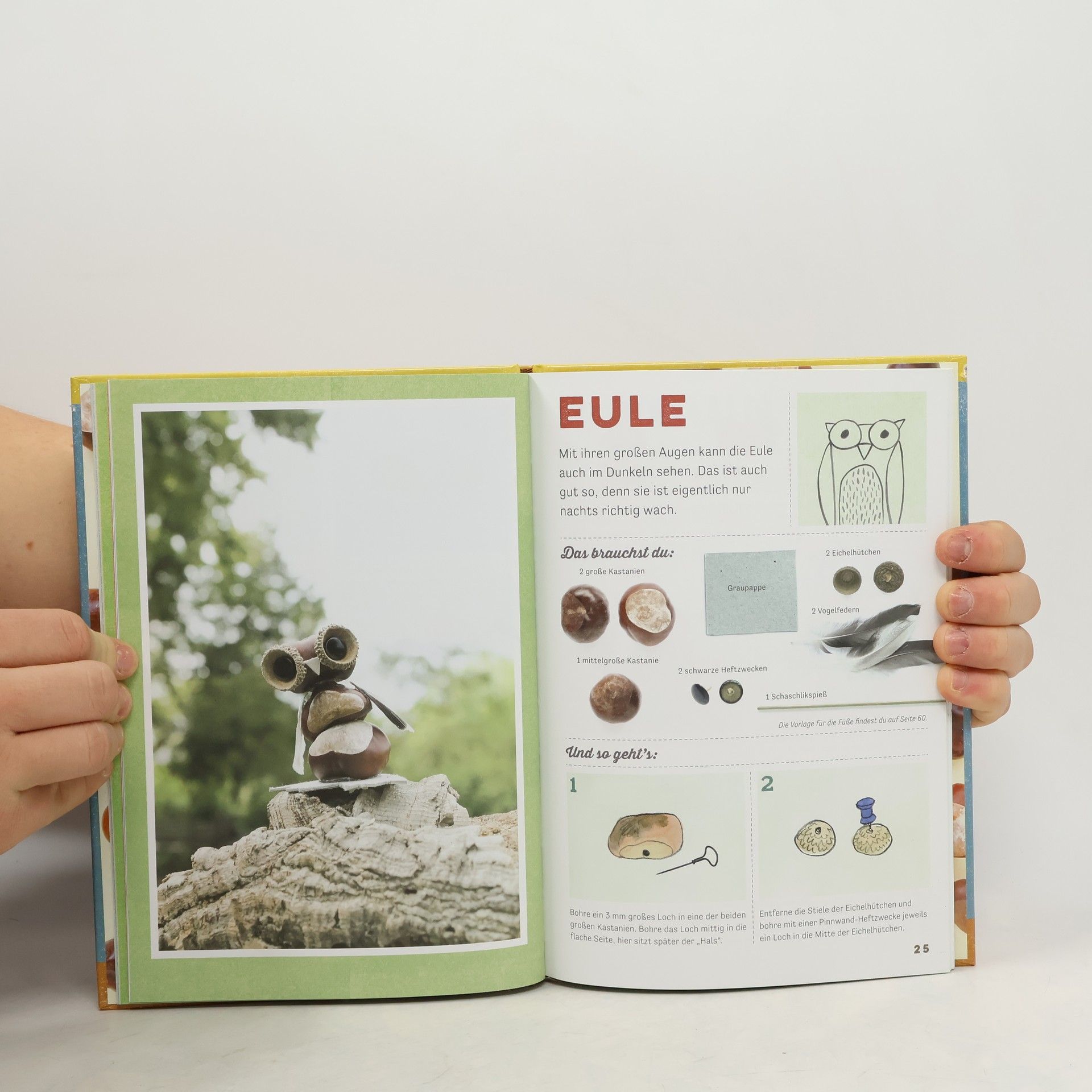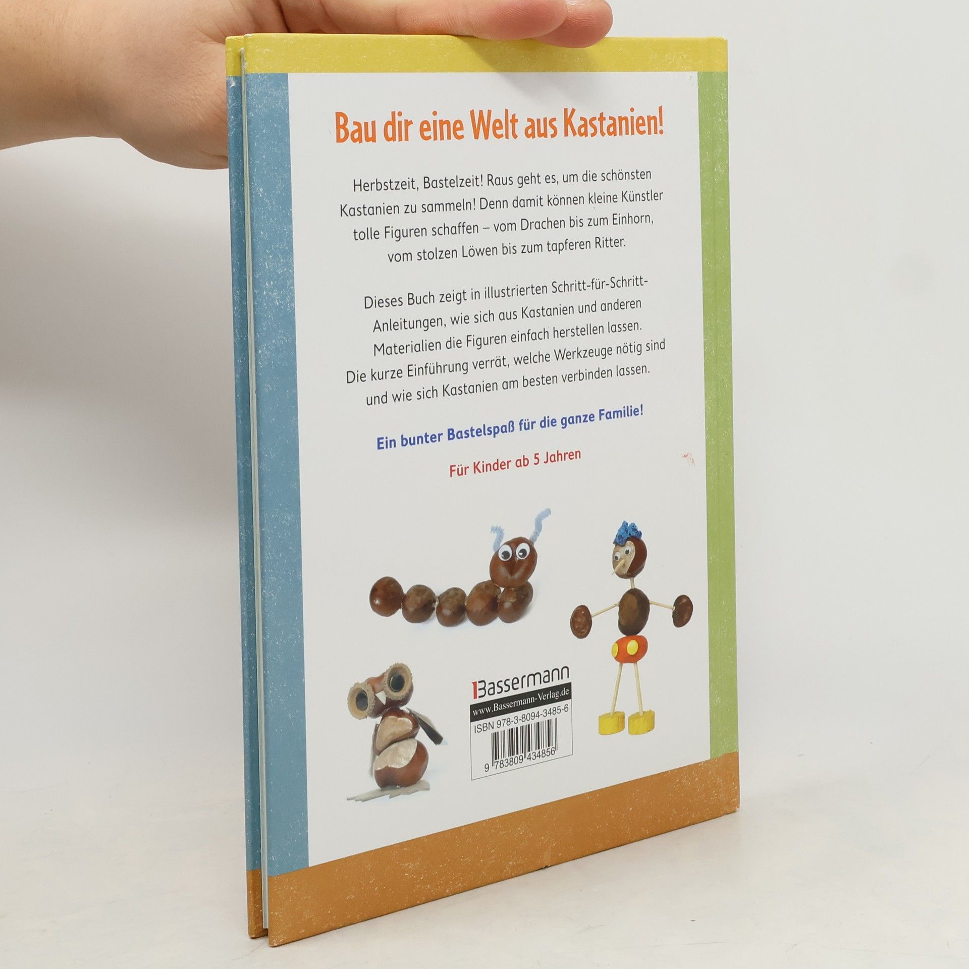 Der Bastelspaß für die ganze Familie Nichts macht im Herbst mehr Spaß, als mit der ganzen Familie draußen Kastanien zu sammeln, um daraus die tollsten Figuren zu kreieren - vom stolzen Löwen bis zum tapferen Ritter. Dieses Buch zeigt in genau illustrierten Schritt-für-Schritt-Anleitungen, wie Sie mit Ihren Kindern Tiere und Männchen aus Kastanien und anderen Materialien leicht nachbasteln können. Neben einer Einführung zu dem benötigten Zubehör gibt es jeweils ein Foto, auf dem jede der 20 Figuren - atmosphärisch in der Natur inszeniert - zu sehen ist. Ein bunter Bastelspaß für kleine Künstler ab 5 Jahren. Hast du Kinder, hast du Kastanien! Das Buch zum meistgesammelten Gegenstand Kastanien - Das Kinder-Highlight des Herbstes Zauberhafte Figuren basteln aus Kastanien und anderen Materialien 20 originelle Figuren: Drachen, Ritter, Elfen, Löwen, Tiger, Pinguine u. v. m. Kindgerechte, nur über die Illustrationen zu erfassende Anleitungen Mit atmosphärischen Fotos der Kastanien-Figuren - vom Löwen bis zum Ritter Verbasteln statt wegschmeißen Ausstattung: durchgehend farbige Abbildungen