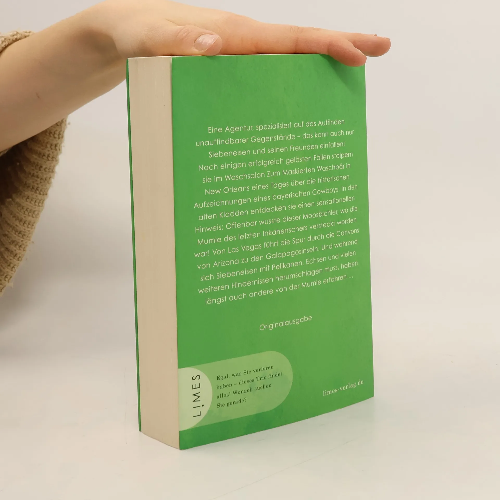Charmant, schräg, cool – der Weltenbummler Siebeneisen ist Kult! Eine Agentur, spezialisiert auf das Auffinden unauffindbarer Gegenstände – das kann auch nur Siebeneisen und seinen Freunden einfallen! Nach einigen erfolgreich gelösten Fällen, stolpern sie im Waschsalon Zum Maskierten Waschbär in New Orleans eines Tages über die historischen Aufzeichnungen eines bayerischen Cowboys und entdecken darin einen sensationellen Hinweis: Offenbar wusste dieser Moosbichler, wo die Mumie des letzten Inkaherrschers versteckt worden war! Von Las Vegas führt die Spur durch die Canyons von Arizona bis zu den Galápagosinseln. Und während sich Siebeneisen mit Pelikanen, Echsen und vielen weiteren Hindernissen herumschlägt, haben längst auch andere von der Mumie erfahren …