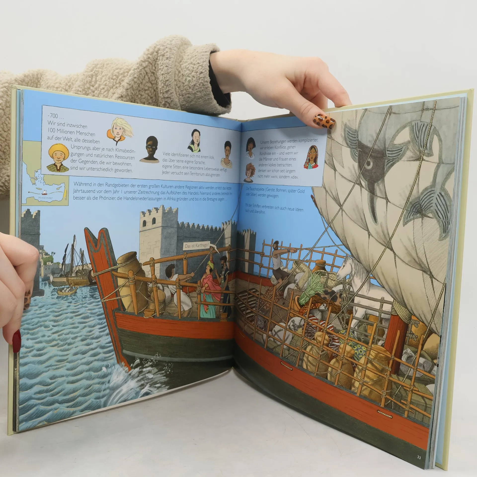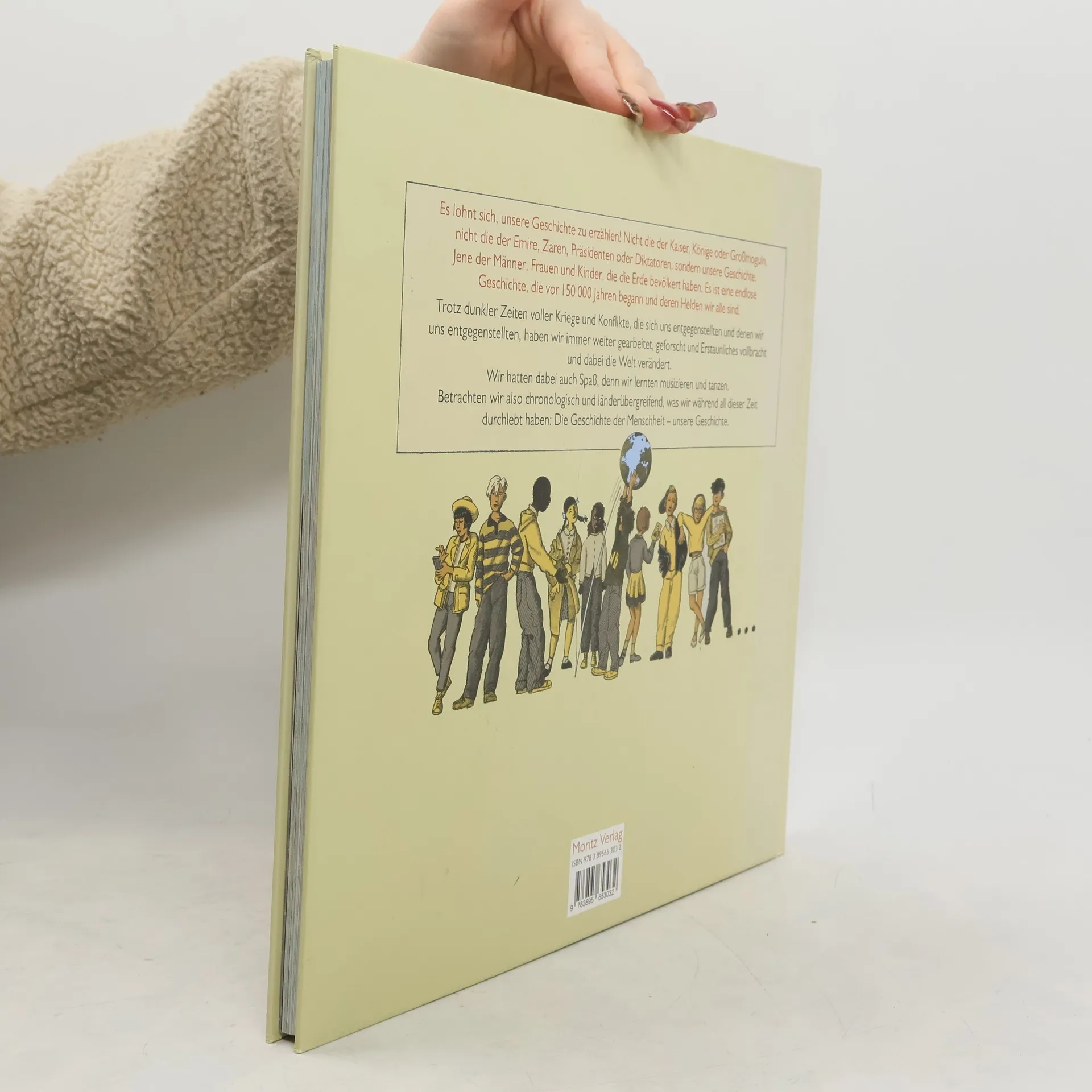 Große und prachtvolle Bilder zu präzisen Texten: Yvan Pommaux erzählt unsere Geschichte – auf allen Kontinenten, zu allen Zeiten, in allen Facetten. Dieses Buch erzählt unsere Geschichte, die Geschichte der Menschheit, eine endlose Geschichte, deren Helden wir alle sind. Wir stehen im Mittelpunkt: Wir sind es, wir Menschen haben die Welt zu dem gemacht, was und wie sie ist. Wir haben entdeckt und gekämpft, gegründet und unterdrückt, geforscht und gelitten. So ist »Wir und unsere Geschichte« kein Buch der »großen« Namen, denn Könige oder Päpste, Entdecker oder Philosophen kommen keine darin vor. Immer geht es um uns – um Männer, Frauen und Kinder, die ausgehend von Afrika die ganze Welt bevölkert haben, von Babylon bis zur Osterinsel. In all seiner Pracht und Präzision wird dieses Buch lange Bestand haben.