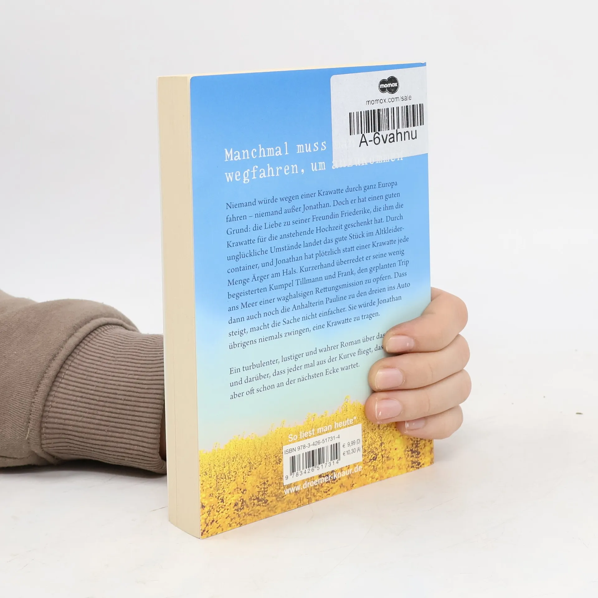 Ein turbulenter, lustiger und wahrer Roman über die Liebe, das Leben und darüber, dass jeder mal aus der Kurve fliegt, das Glück aber oft schon an der nächsten Ecke wartet - aus der Feder des mehrfach ausgezeichneten Comedian Claudius Pläging. Niemand würde wegen einer Krawatte durch ganz Europa fahren – niemand außer Jonathan. Doch er hat einen guten Grund: die Liebe zu seiner Freundin Friederike, die ihm die Krawatte für die anstehende Hochzeit geschenkt hat. Durch unglückliche Umstände landet das gute Stück im Altkleidercontainer, und Jonathan hat plötzlich statt einer Krawatte jede Menge Ärger am Hals. Kurzerhand überredet er seine wenig begeisterten Kumpel Tillmann und Frank, den geplanten Trip ans Meer einer waghalsigen Rettungsmission zu opfern. Dass dann auch noch die Anhalterin Pauline zu den dreien ins Auto steigt, macht die Sache nicht einfacher. Sie würde Jonathan übrigens niemals zwingen, eine Krawatte zu tragen.