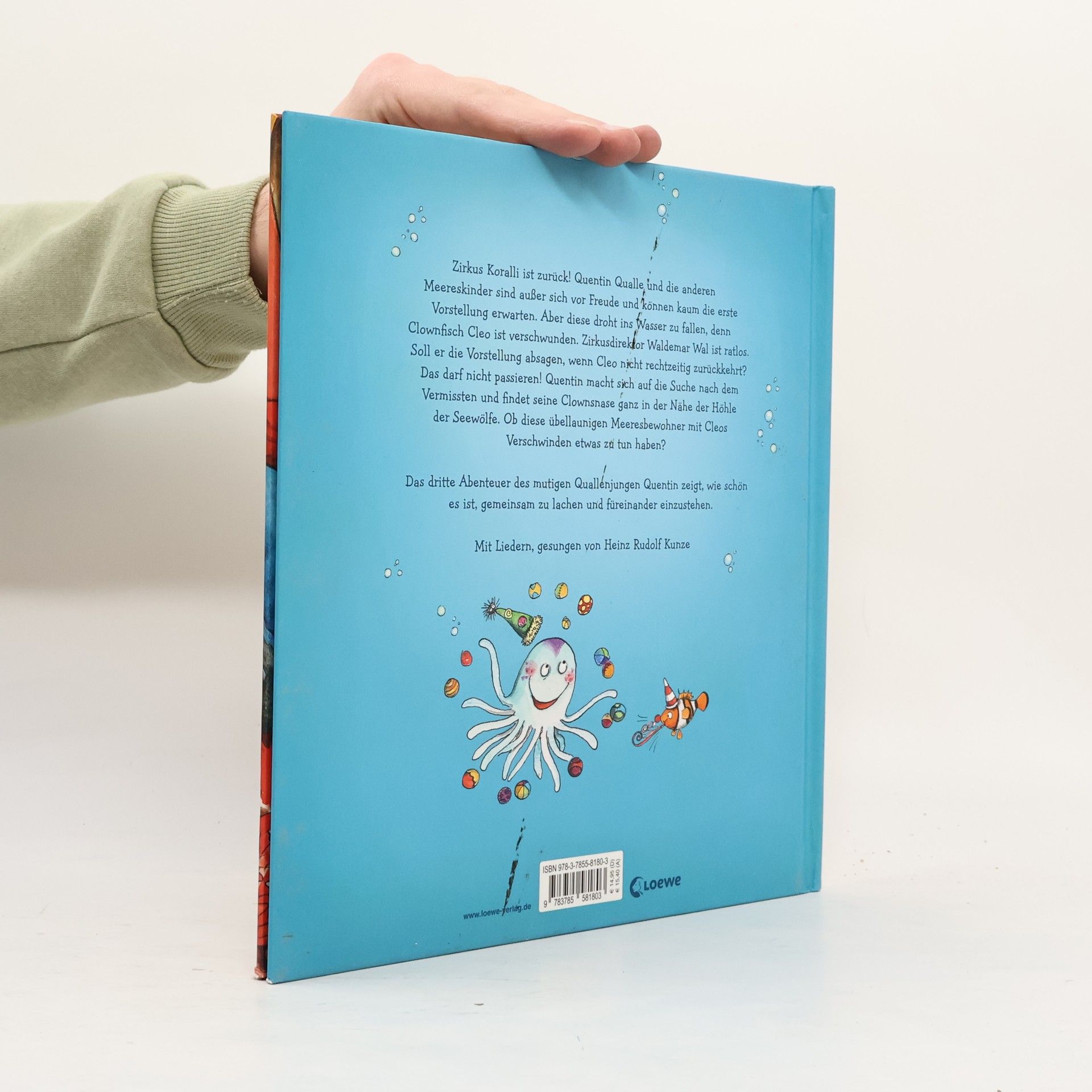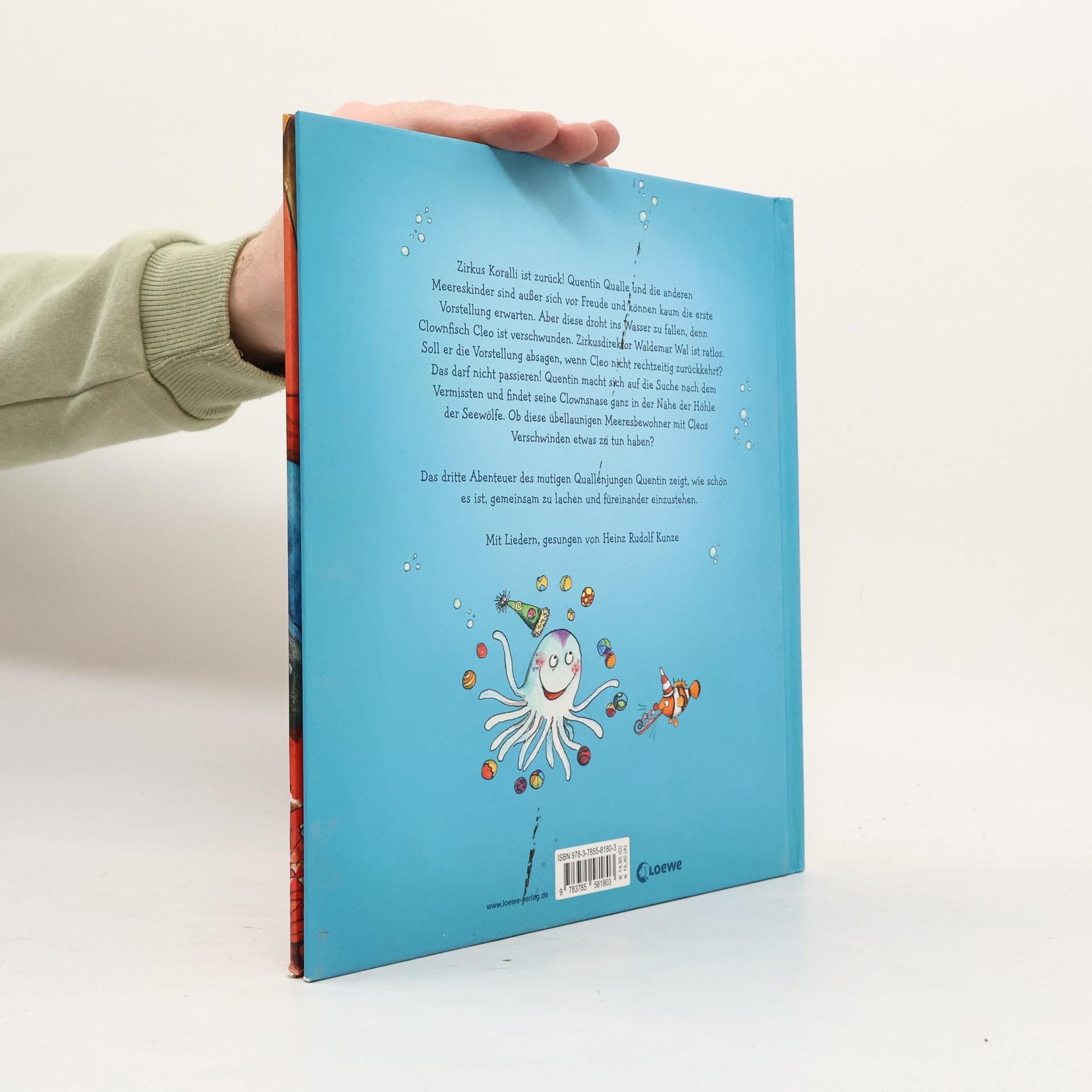 Zirkus Koralli ist zurück! Quentin Qualle und die anderen Meereskinder sind außer sich vor Freude und können kaum die erste Vorstellung erwarten. Aber diese droht ins Wasser zu fallen, denn Clownfisch Cleo ist verschwunden. Zirkusdirektor Waldemar Wal ist ratlos. Soll er die Aufführung absagen, wenn Cleo nicht rechtzeitig zurückkehrt? Das darf nicht passieren! Quentin macht sich auf die Suche nach dem Vermissten und findet seine Clownsnase ganz in der Nähe der Höhle der Seewölfe. Ob diese übellaunigen Meeresbewohner mit Cleos Verschwinden etwas zu tun haben? Das dritte Vorleseabenteuer von Quentin Qualle zum Thema Zirkus zeigt, wie wichtig und schön es ist, füreinander einzustehen und gemeinsam zu lachen. Nach einer Idee des bekannten Musikers Heinz Rudolf Kunze und ausgestattet mit zahlreichen farbigen Bildern von „Tafiti“-Illustratorin Julia Ginsbach. Mehr Infos rund um Quentin Qualle und tolle Extras unter: www.quentin-qualle.de