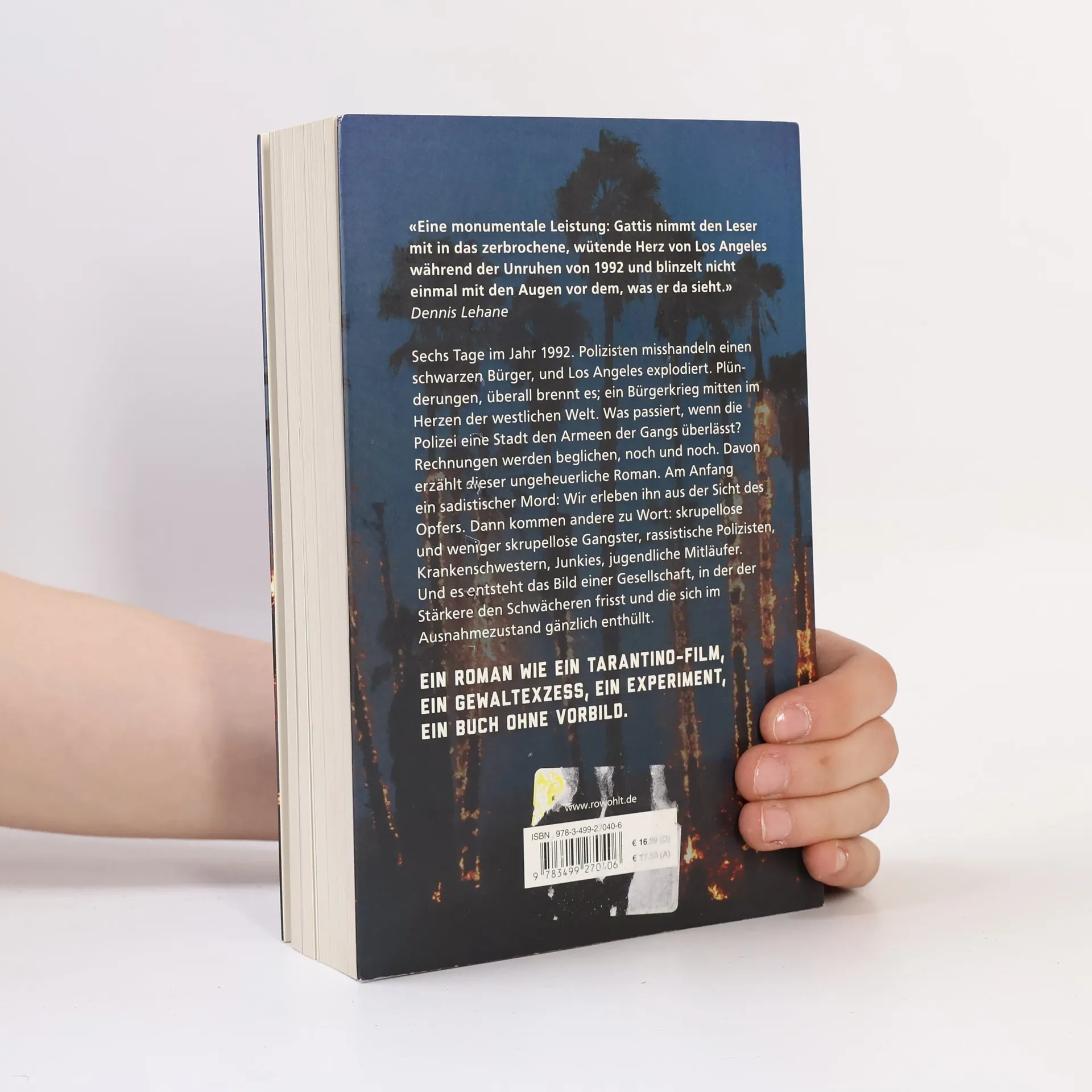 Sechs Tage im Jahr 1992. Polizisten misshandeln einen schwarzen Bürger und Los Angeles explodiert. Plünderungen, überall brennt es; ein Bürgerkrieg mitten im Herzen der westlichen Welt. Was passiert, wenn die Polizei eine Stadt den Armeen der Gangs überlässt? Rechnungen werden beglichen, noch und noch. Davon erzählt dieser ungeheuerliche Roman. Am Anfang ein unmenschlicher Mord: Wir erleben ihn aus der Sicht des Opfers. Dann kommen andere zu Wort: skrupellose und weniger skrupellose Gangster, rassistische Polizisten, Krankenschwestern, Junkies, jugendliche Mitläufer. Und es entsteht das Bild einer Gesellschaft, in der der Stärkere den Schwächeren frisst und die sich im Ausnahmezustand gänzlich enthüllt. Ein Roman wie ein Tarantino-Film, ein Gewaltexzess, ein Experiment, ein Buch ohne Vorbild.