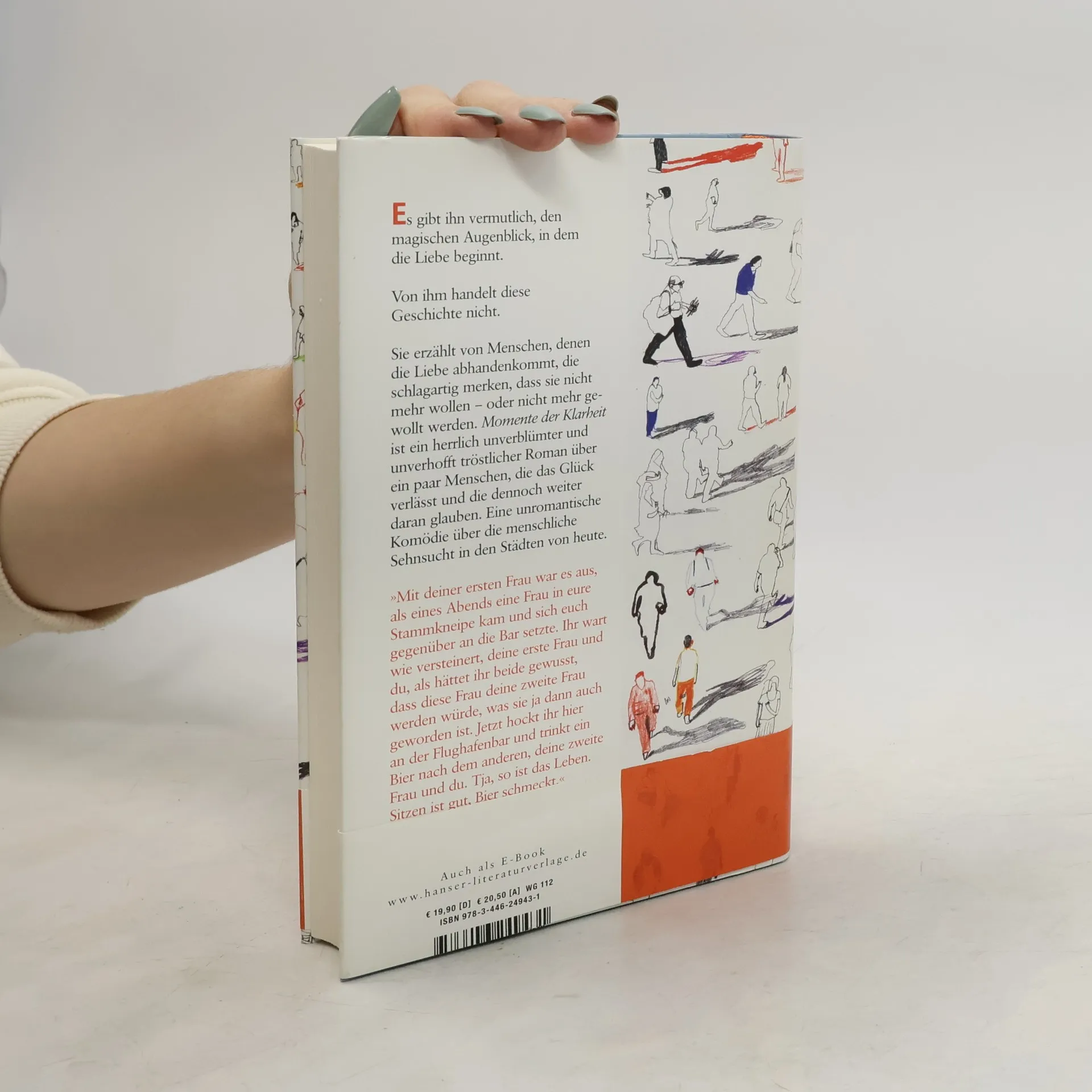 Engelhardt nimmt Anlauf und verlässt die Party durch das Fenster im ersten Stock. Seine beste Freundin Maren trinkt nicht mehr und verwandelt sich in ihr höheres Ich. Marens Ex-Lover Clemens fühlt sich mittelmäßig, hat dafür aber originellen Sex, und Bender, auf dessen Hochzeit sich alle treffen, regelt seine Angelegenheiten und verschwindet, wahrscheinlich für immer. Allen gemeinsam ist, dass sie rastlos und unglücklich sind, obwohl es ihnen eigentlich ganz gut geht. Und dass sie ihre Liebe in einem hellen Moment als das sehen, was sie ist, nämlich vorbei. Jackie Thomaes Debütroman ist so hart und komisch wie das wahre Leben – eine unromantische Komödie über die menschliche Sehnsucht in den Städten von heute.