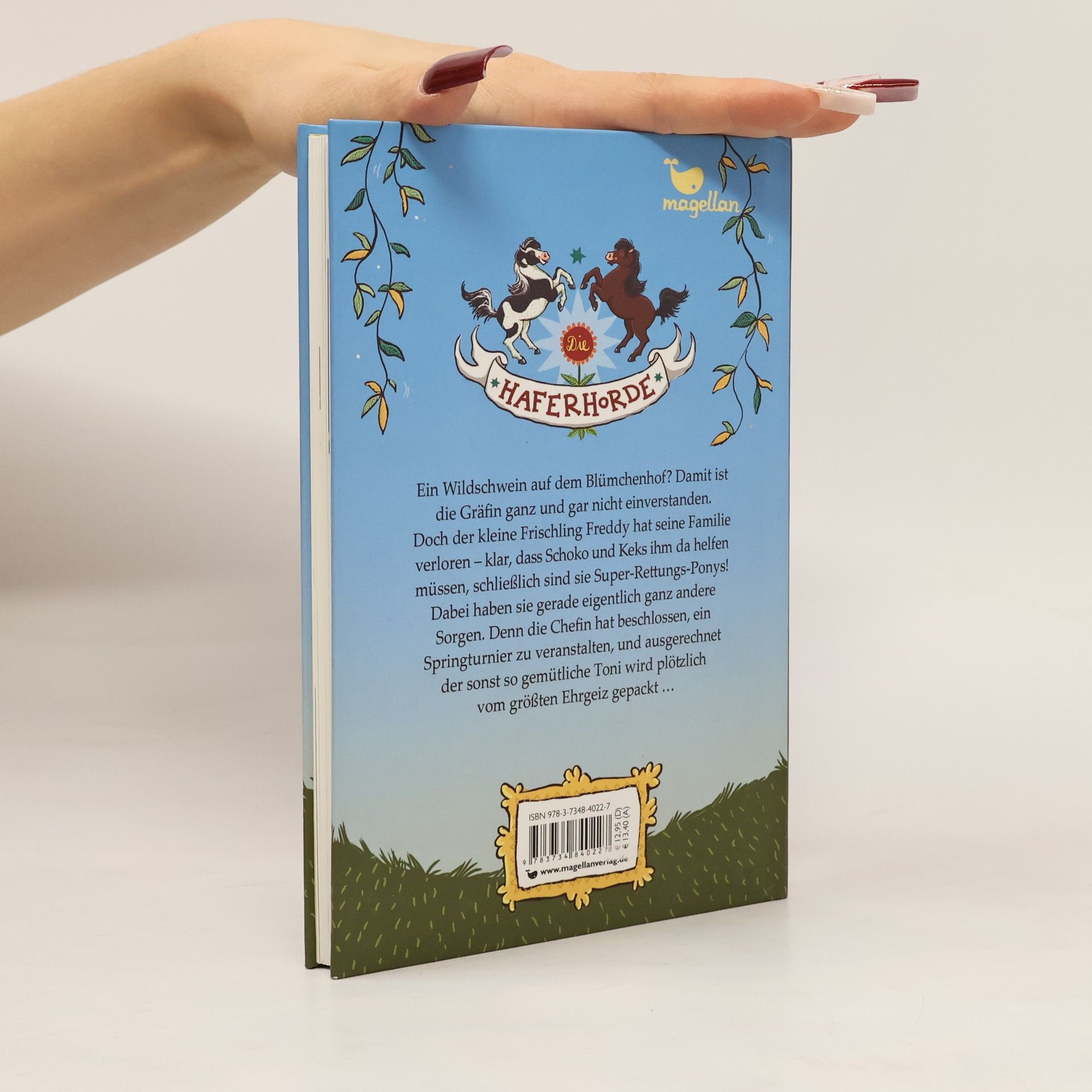 Ein pferdestarkes Kinderbuch ab 8 Jahren rund um die liebenswerten Ponys Schoko und Keks. Ein Wildschwein auf dem Blümchenhof? Damit ist die Gräfin gar nicht einverstanden. Doch Frischling Freddy hat seine Familie verloren – klar dass Schoko und Keks ihm helfen müssen, schließlich sind sie Super-Rettungs-Ponys! Dabei haben sie gerade eigentlich andere Sorgen. Denn die Chefin hat beschlossen, ein Springturnier zu veranstalten, und ausgerechnet der gemütliche Haflinger Toni wird plötzlich vom größten Ehrgeiz gepackt …