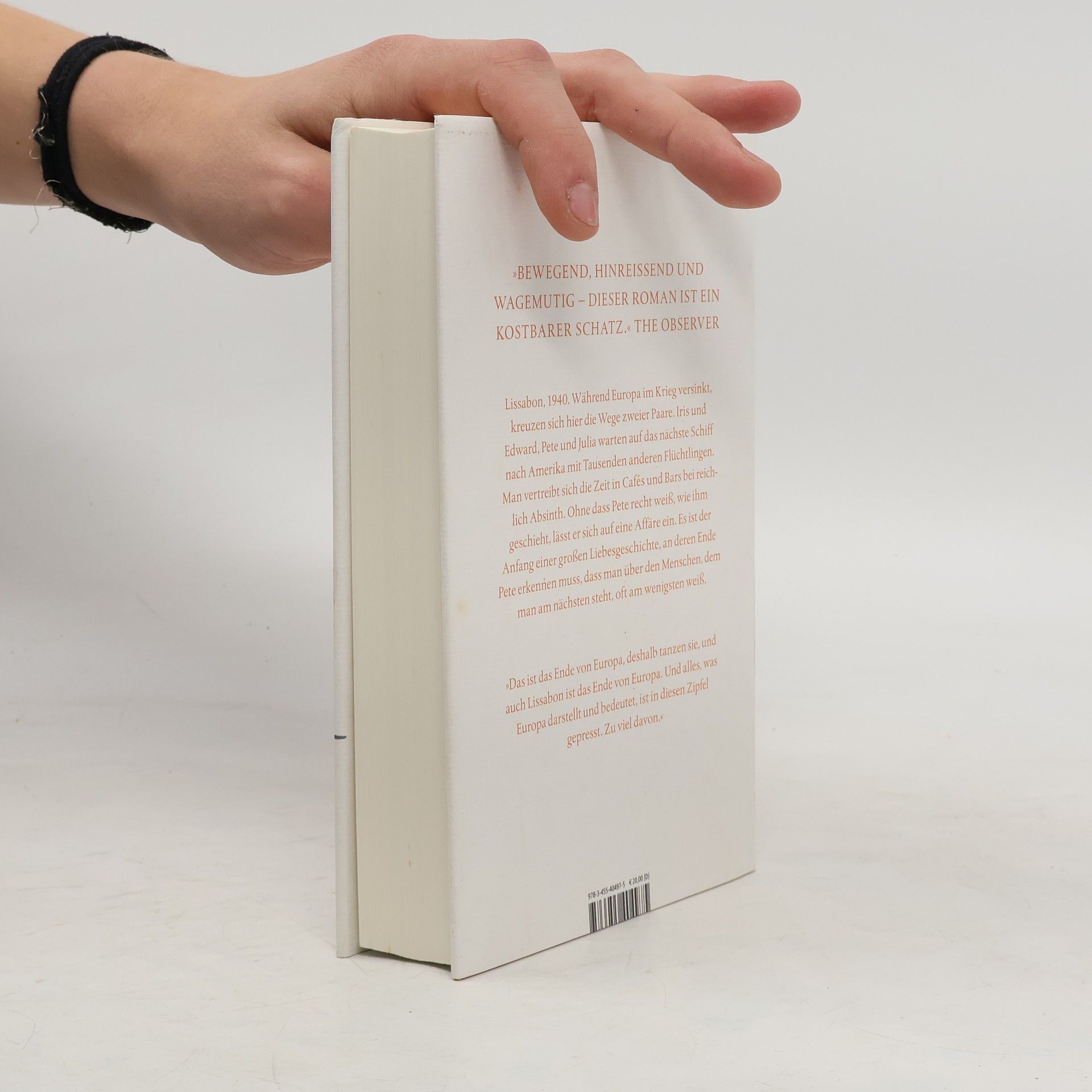 Lissabon, 1940: Während Europa im Krieg versinkt, kreuzen sich hier die Wege zweier Paare mit fatalen Konsequenzen. Man wartet auf das nächste Schiff nach Amerika mit Tausenden anderer Flüchtlinge und vertreibt sich die Zeit in Cafés und Bars bei reichlich Absinth: „Das ist das Ende von Europa, deshalb tanzen sie, und auch Lissabon ist das Ende von Europa. Und alles, was Europa darstellt und bedeutet, ist in diesen Zipfel gepresst. Zu viel davon.“Anders als seine skeptische Frau Julia ist Pete Winters sofort fasziniert von Iris und Edward Freleng und ihrer glamourösen, freien Lebensart. Aus Faszination wird bald Liebe. Ohne dass er recht weiß, wie ihm geschieht, lässt sich Pete auf eine unmögliche Affäre ein. Es ist der Anfang einer großen Liebesgeschichte Während Europa dem Abgrund entgegentaumelt, wandeln sich die Beziehungen dieser vier Menschen auf dramatische Weise. Und zuletzt begreift Pete, dass man über den Menschen, dem man am nächsten steht, oft am wenigsten weiß.