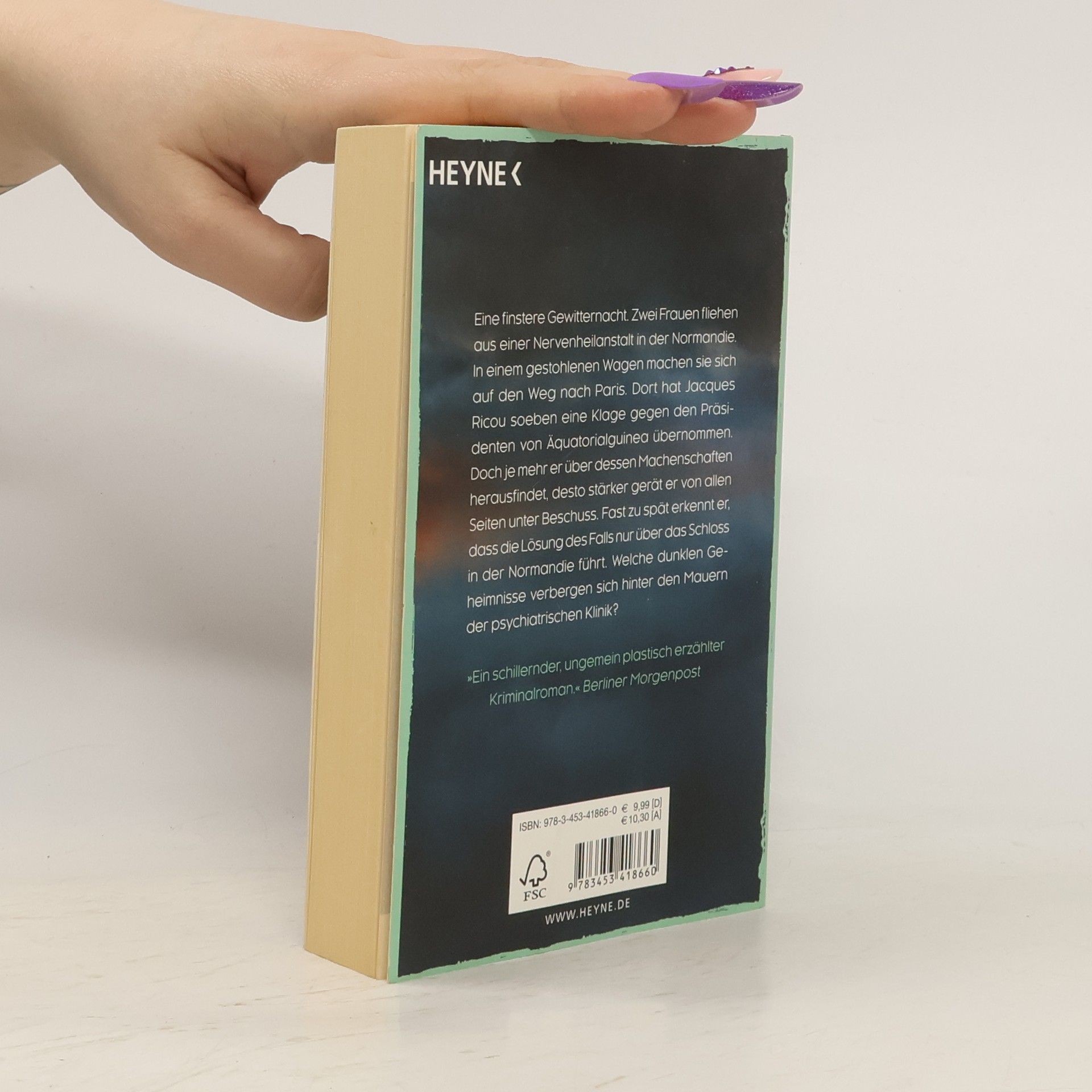 Eine finstere Gewitternacht. Zwei Frauen fliehen aus einer Nervenheilanstalt in der Normandie. In einem gestohlenen Wagen machen sie sich auf den Weg nach Paris. Dort hat Jacques Ricou soeben eine Klage gegen den Staatspräsidenten von Äquatorialguinea übernommen. Doch je mehr er über dessen Machenschaften herausfindet, desto stärker gerät er von allen Seiten unter Beschuss. Fast zu spät erkennt er, dass die Lösung des Falls nur über das Schloss in der Normandie führt. Welche dunklen Geheimnisse verbergen sich hinter den Mauern der psychiatrischen Klinik?