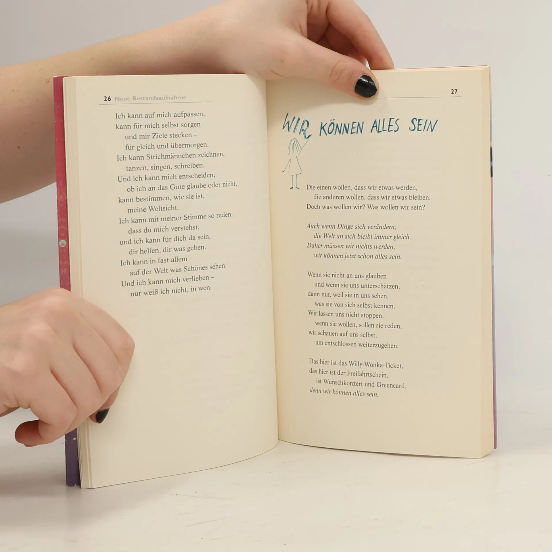 Mit »One Day« gelang Julia Engelmann ein sensationeller Poetry-Slam-Erfolg, der als Internetphänomen Millionen begeisterte und auch als Buch zum Bestseller wurde. Ihr ganz eigener Sound und ihre ganz eigene Sprache sind es, die die Herzen so berühren. In ihrem neuen Buch stellt sie erneut eine stimmungsvolle Playlist poetischer Texte über Träume und Liebe zusammen, über Wünsche und Freisein, aber auch über Loslassen und Traurigkeit. Julia Engelmann schreibt einfühlsam und bewegend davon, dass wir das Leben nicht verschlafen sollen, sondern was verändern, die Welt auf den Kopf stellen, ja, einfach mal Handstand machen – alles, was es braucht, ist ein bisschen Mut. Denn »wir können alles sein, Baby«!Wunderschön gestaltet mit Illustrationen der Autorin. Ausstattung: mit Illustrationen