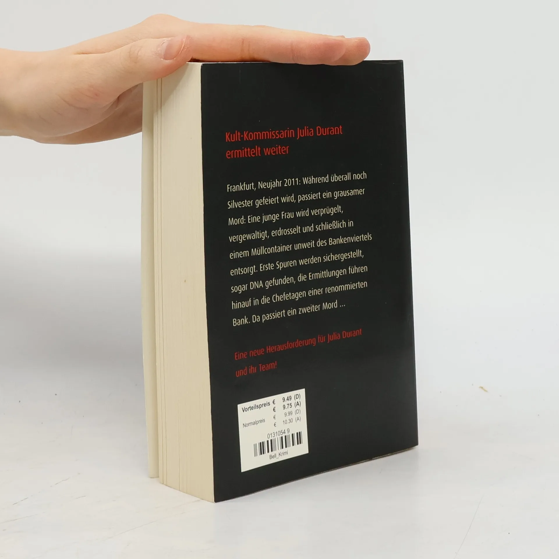 Deutscher Autor (1954-2011), fortgeführt von Daniel Holbe, geb. 1976. - Frankfurt, Neujahr 2011: Während man überall noch im Silvesterrausch ist, passiert, unbemerkt von allen, ein grausamer Mord: Eine junge Frau wird verprügelt, vergewaltigt, erdrosselt und schließlich in einem Müllcontainer unweit des Bankenviertels entsorgt. Erste Spuren werden sichergestellt, sogar DNA gefunden, die Ermittlungen führen hinauf in die Chefetagen einer renommierten Bank. Der Verdächtige ist stur, verweigert die Aussage und verbirgt sich hinter einer Armada von Anwälten. Schuldig? Da passiert ein zweiter Mord