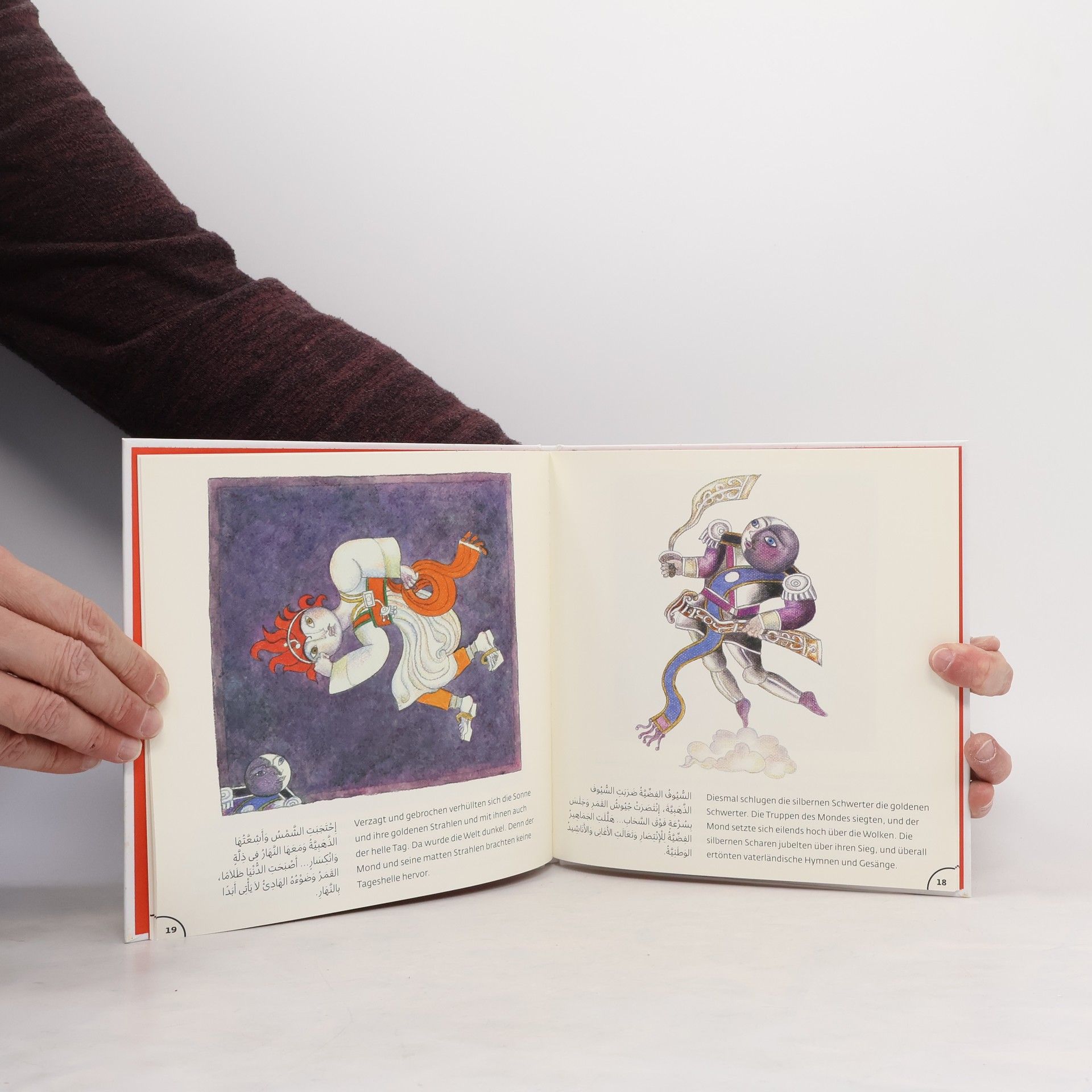 Im Reich des Mondes ist es angenehm still und beruhigend dunkel; das Reich der Sonne hingegen ist voller Leben und froher Farben. Das birgt Spannungen, und richtig, irgendwann fangen die beiden an zu streiten. Ein Kampf beginnt, mit feuriger Hitze auf der einen und klirrender Kälte auf der anderen Seite. Muss das sein?