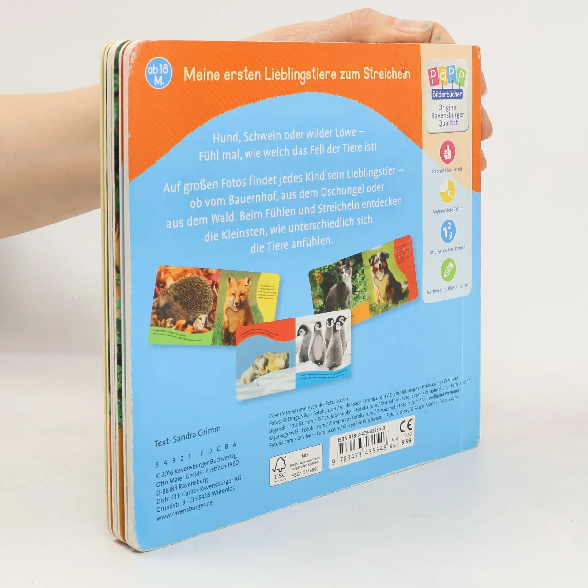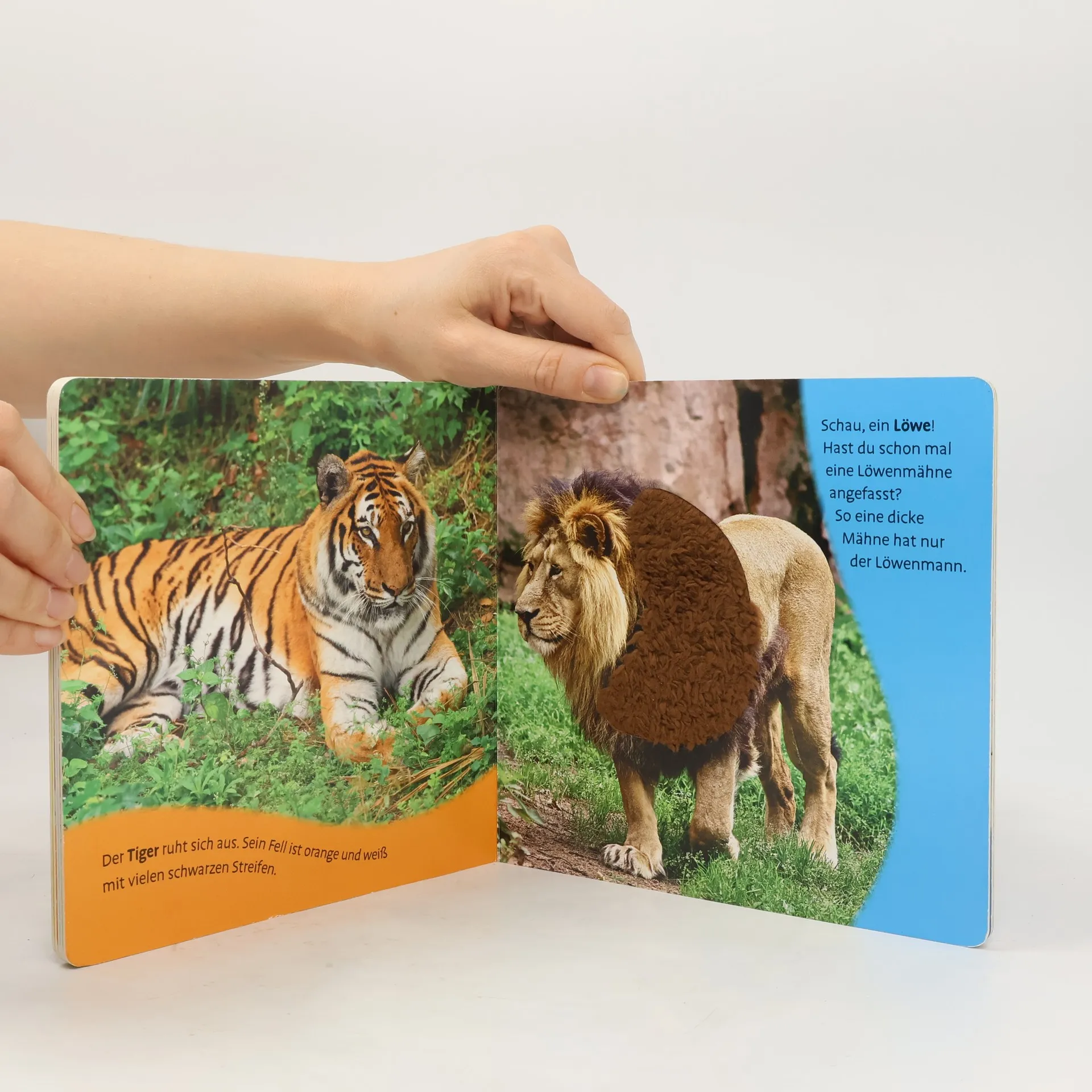 Streichle deine Lieblingstiere! Realistische Fotos und große Fühlelemente laden zum Streicheln und Entdecken ein. Merkst du, wie unterschiedlich sich der Hund, das Schwein, der Löwe und viele andere Tiere anfühlen?