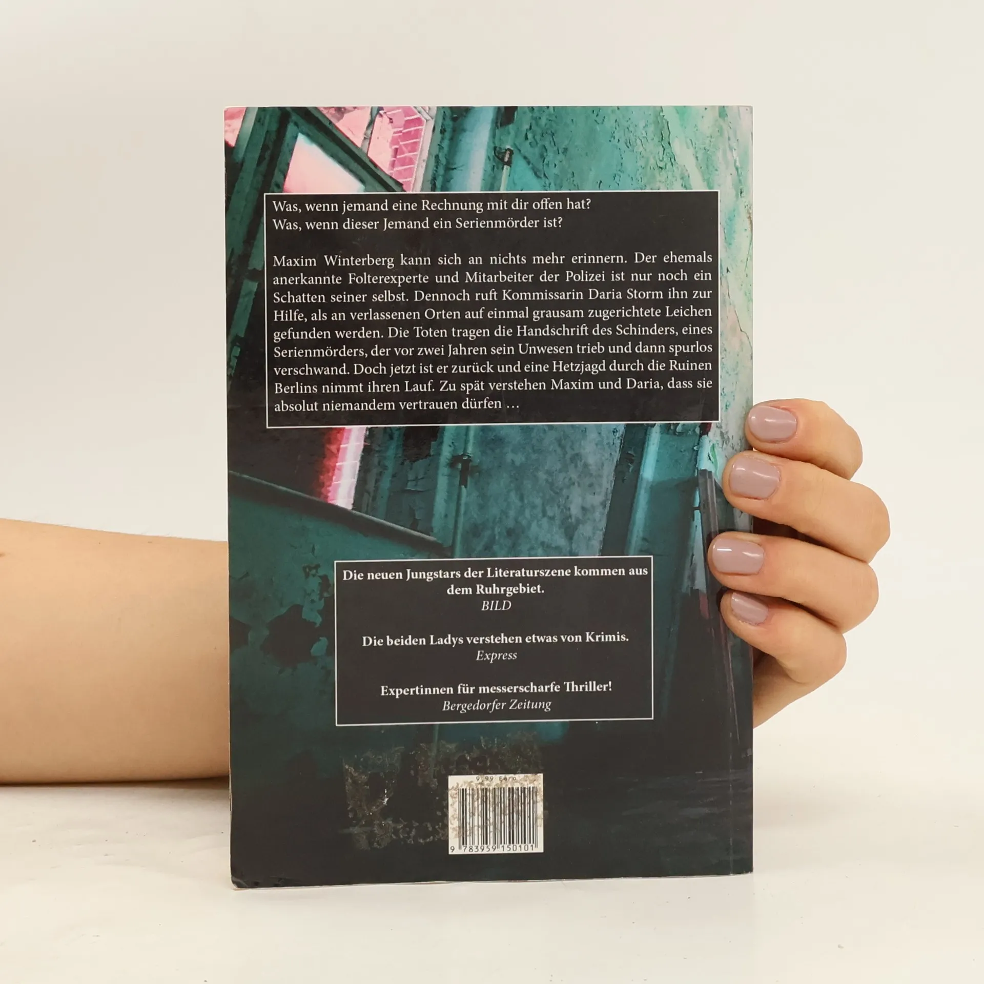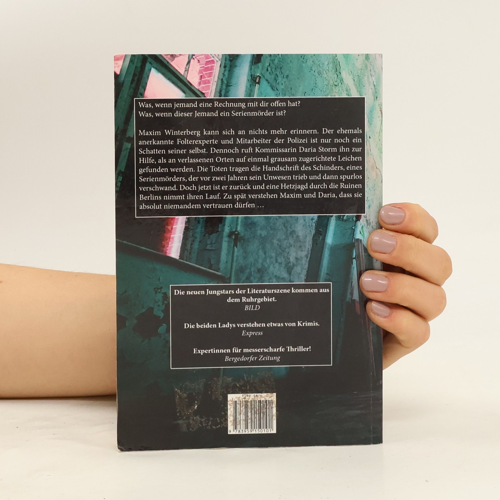Was, wenn jemand eine Rechnung mit dir offen hat? Was, wenn dieser Jemand ein Serienmörder ist? Maxim Winterberg kann sich an nichts mehr erinnern. Der ehemals anerkannte Folterexperte und Mitarbeiter der Polizei ist nur noch ein Schatten seiner selbst. Dennoch ruft Kommissarin Daria Storm ihn zur Hilfe, als an verlassenen Orten auf einmal grausam zugerichtete Leichen gefunden werden. Die Toten tragen die Handschrift des Schinders, eines Serienmörders, der vor zwei Jahren sein Unwesen trieb und dann spurlos verschwand. Doch jetzt ist er zurück und eine Hetzjagd durch die Ruinen Berlins nimmt ihren Lauf. Zu spät verstehen Maxim und Daria, dass sie absolut niemandem vertrauen dürfen …
