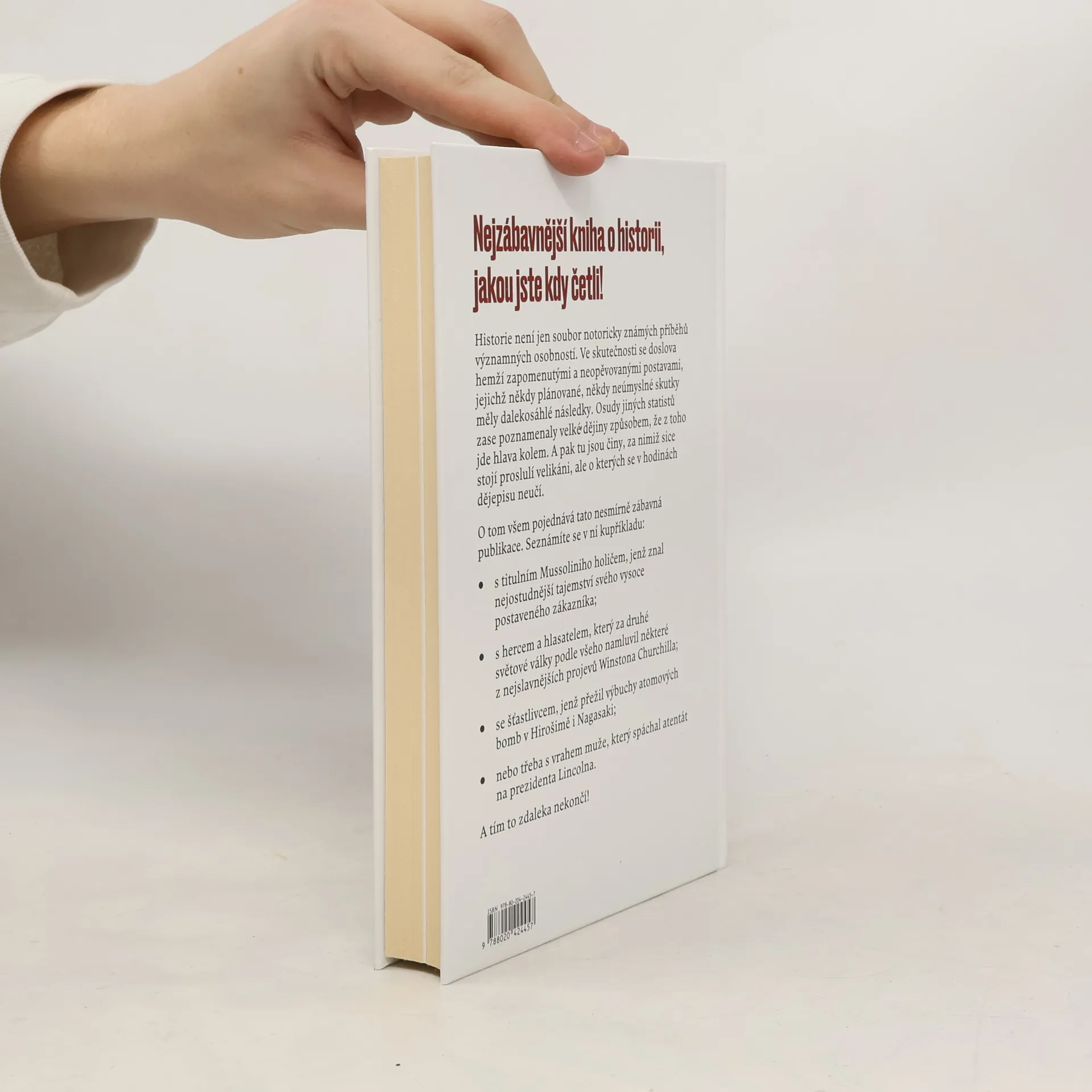 Historie není jen soubor notoricky známých příběhů významných osobností. Ve skutečnosti se doslova hemží zapomenutými a neopěvovanými postavami, jejichž někdy plánované, někdy neúmyslné skutky měly dalekosáhlé následky. Osudy jiných statistů zase poznamenaly velké dějiny způsobem, že z toho jde hlava kolem. A pak tu jsou činy, za nimiž sice stojí proslulí velikáni, ale o kterých se v hodinách dějepisu z nejrůznějších důvodů neučí. O tom všem pojednává tato nesmírně zábavná publikace. Seznámíte se v ní kupříkladu s titulním Mussoliniho holičem, jenž znal nejostudnější tajemství svého vysoce postaveného zákazníka; s hercem a hlasatelem, který za druhé světové války podle všeho namluvil některé z nejslavnějších projevů Winstona Churchilla; se šťastlivcem, jenž přežil výbuchy atomových bomb v Hirošimě i Nagasaki; nebo třeba s vrahem muže, který spáchal atentát na prezidenta Lincolna. A tím to zdaleka nekončí! Vydejte se s námi do zákulisí novodobé historie a odhalte zcela nové stránky zdánlivě dobře známých událostí.