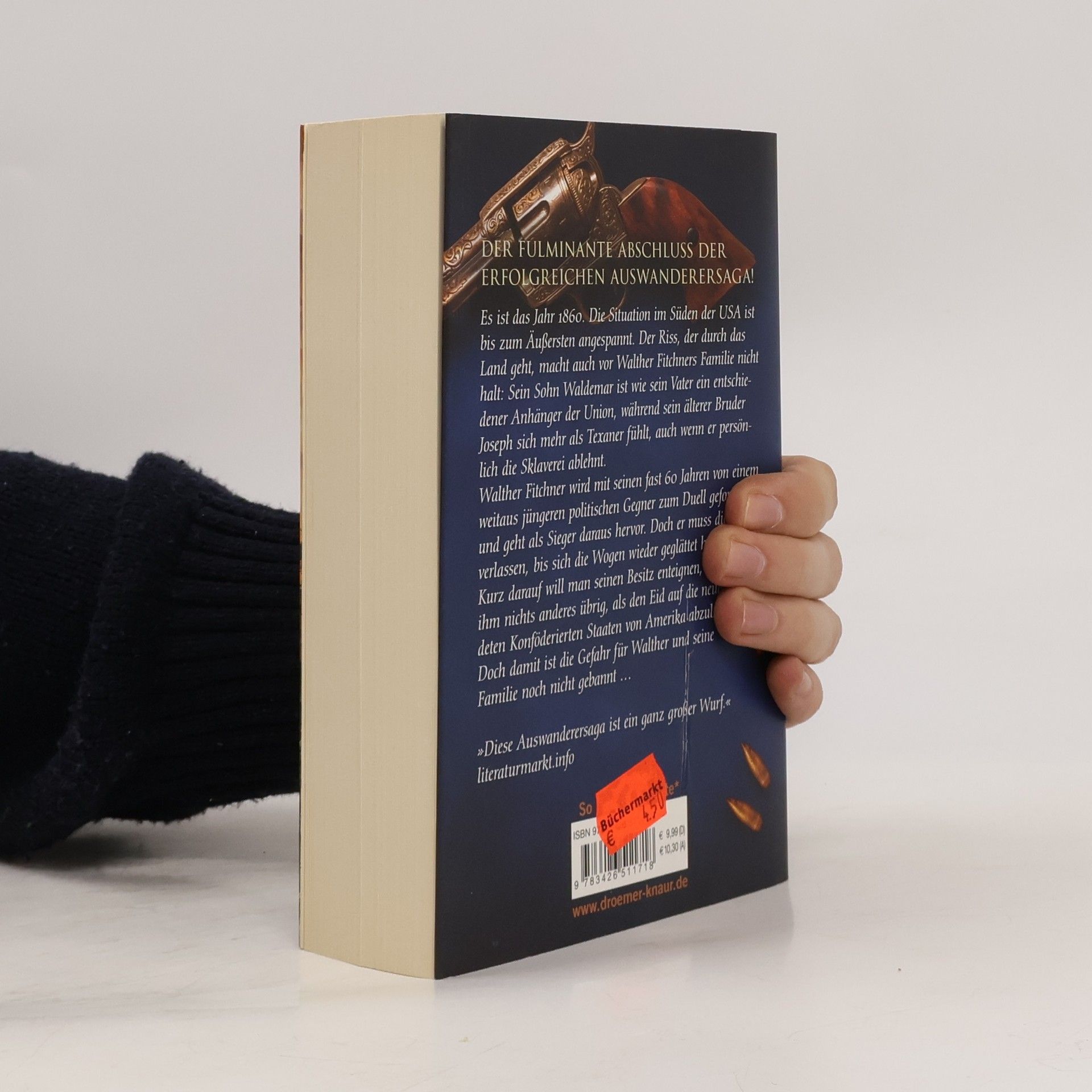 Der fulminante Abschluss der großen Auswanderertetralogie der Bestsellerautoren Iny Lorentz ist rauchend von Pulverdampf, süffig und voller Leidenschaft und Dramatik! Im Jahr 1860 ist die Situation im Süden der USA angespannt. Der Riss im Land betrifft auch die Familie von Walther Fitchner: Sein Sohn Waldemar ist ein entschiedener Anhänger der Union, während sein älterer Bruder Joseph sich als Texaner sieht, auch wenn er die Sklaverei ablehnt. Walther, fast 60 Jahre alt, wird von einem jüngeren politischen Gegner zum Duell gefordert und siegt, muss jedoch die Stadt verlassen, bis sich die Lage beruhigt. Kurz darauf droht die Enteignung seines Besitzes, und er sieht sich gezwungen, den Eid auf die neugegründeten Konföderierten Staaten von Amerika abzulegen. Doch die Gefahr für Walther und seine Familie bleibt bestehen. Die historische Roman-Reihe um Walter Fitchner und seine Nachkommen bietet Abenteuer, Dramatik und Liebe! Entdecken Sie weitere historische Abenteuerromane von Iny Lorentz im bewegten 19. Jahrhundert: Dramatisch und exotisch in der Südsee-Saga, einfühlsam und spannend in der Preussen-Trilogie, sowie mutig und dramatisch in der Berlin-Trilogie.