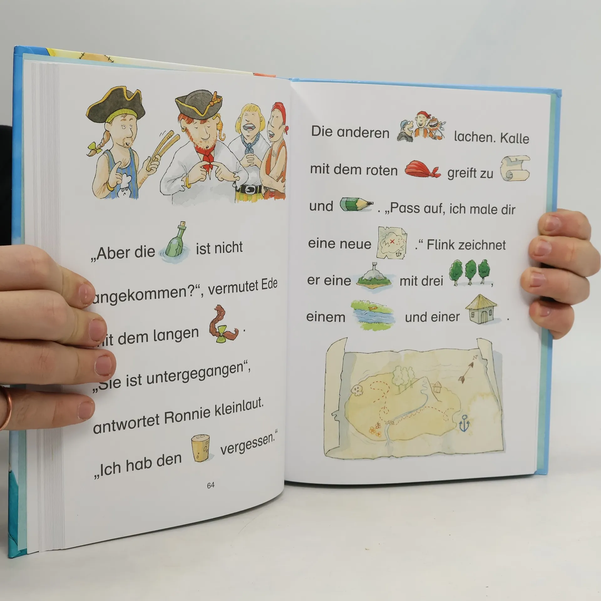 Die Piratenflagge ist gehisst, der Anker gelichtet, die Segel gesetzt. Los geht die Fahrt zu verborgenen Schätzen und neuen Abenteuern! Doch wie findet man Piratengold, wenn die Schatzkarte über Bord geht? Und was braucht der kleine Pirat Paolo, damit er mit seinem Schiff überhaupt fahren kann? Dieses Buch enthält aufregende Geschichten über das wilde Leben kleiner und großer Piraten. In diesem Kinderbuch aus der Leselöwen-Reihe Bildermaus sind die schönsten Tiergeschichten gesammelt. Für Kinder ab 5 Jahren (Vorschule), die lesen lernen möchten. Damit der Leseeinstieg auch sicher gelingt, ist jedes Hauptwort durch ein Bild ersetzt. Die große Fibelschrift, kurze Sätze und viele bunte Bilder sorgen für jede Menge Spaß und machen das Lesenlernen zum Kinderspiel! Mehr über die Leselöwen, spannende Spiele und Leseproben unter