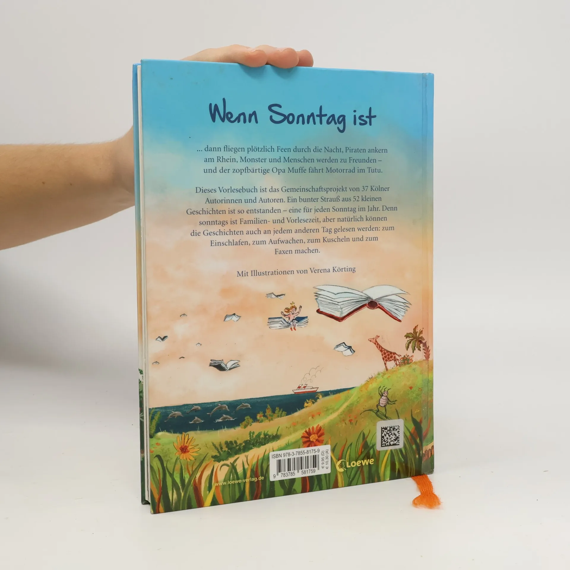 Wenn Sonntag ist ... ... dann fliegen plötzlich Feen durch die Nacht, Piraten ankern am Rhein, Monster und Menschen werden zu Freunden – und der zopfbärtige Opa Muffe fährt Motorrad im Tutu. Dieses Vorlesebuch ist das Gemeinschaftsprojekt von 37 Kölner Autorinnen und Autoren , an dem sowohl bekannte Namen wie auch Jungautoren beteiligt sind. Ein bunter Strauß aus 52 kleinen Geschichten ist so entstanden – eine für jeden Sonntag im Jahr. Denn sonntags ist Familien - und Vorlesezeit , aber natürlich können die Geschichten auch an jedem anderen Tag gelesen werden: zum Einschlafen , zum Aufwachen, zum Kuscheln und zum Faxen machen. Stimmungsvolle Illustrationen von Verena Körting geben in der Vorlesesituation besonderen Anlass zum gemeinsamen Erleben und Besprechen der vielen komischen und fantasievollen Abenteuer , die sich in dieser Gemeinschaftsarbeit versammelt haben.