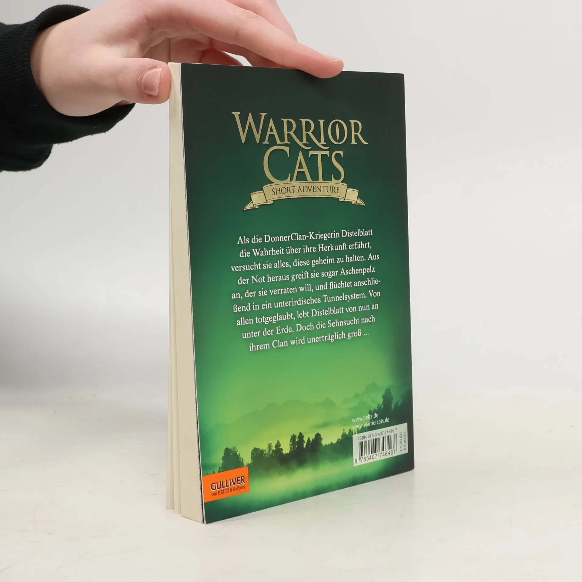 Die DonnerClan-Kriegerin Distelblatt ist erschüttert: Sie ist Tochter einer Heilerin und eines WindClan-Kriegers und somit der Schmähung ihres Clans sicher! Aus lauter Verzweiflung greift sie Aschenpelz an, um zu verhindern, dass dieser ihr Geheimnis verrät, und flüchtet anschließend Hals über Kopf in ein unterirdisches Tunnelsystem. Von allen totgeglaubt, lebt Distelblatt von nun an unter der Erde. Doch die Sehnsucht nach ihren Gefährten wird immer größer und „der verschollene Krieger“ kehrt wieder zu seinem Clan zurück …