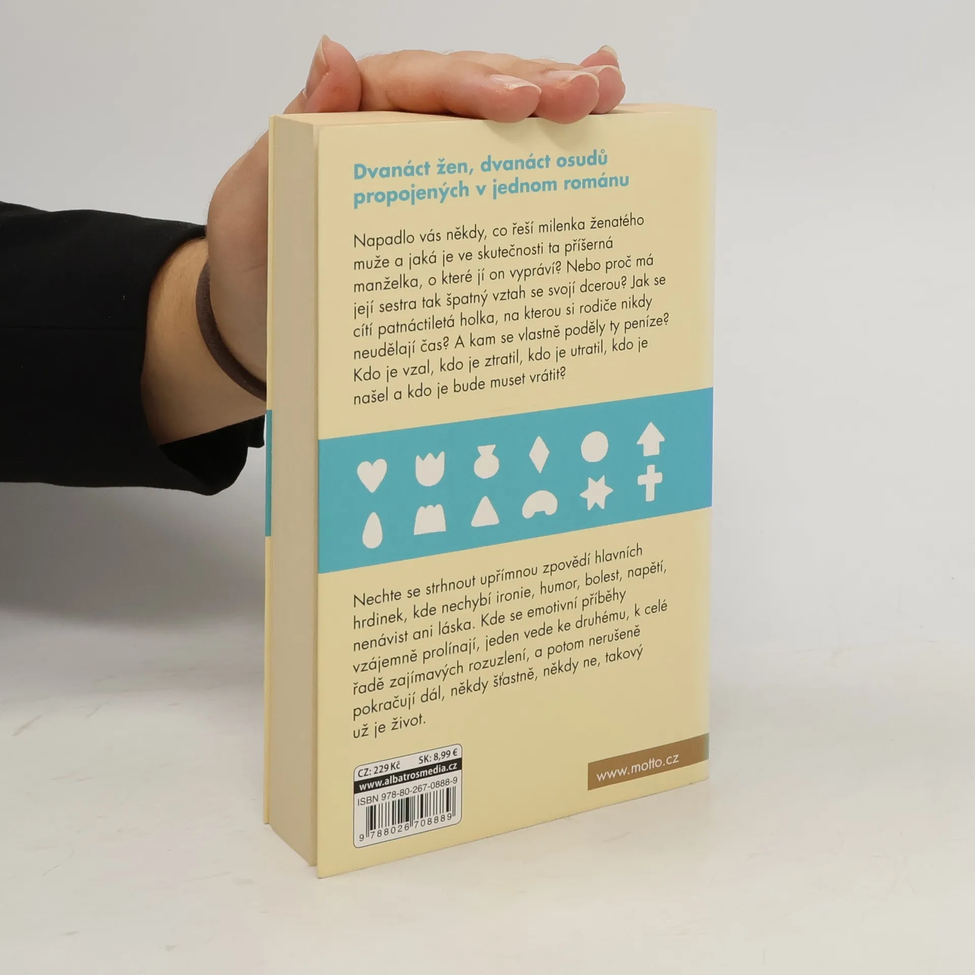 Dvanáct žen, dvanáct osudů propojených v jednom románu. Napadlo vás někdy, co řeší milenka ženatého muže a jaká je ve skutečnosti ta příšerná manželka, o které jí on vypráví? Nebo proč má sestra manželky tak špatný vztah se svojí dcerou. Jak se vlastně cítí ta patnáctiletá holka, na kterou si rodiče nikdy neudělají čas? A kam se vlastně poděly ty peníze? Kdo je vzal, kdo je ztratil, kdo je utratil, kdo je našel a kdo je bude muset vrátit? Nechte se strhnout upřímnou zpovědí hlavních hrdinek, kde nechybí ironie, humor, bolest, napětí, nenávist ani láska. Kde se emotivní příběhy vzájemně prolínají, jeden vede ke druhému, k celé řadě zajímavých rozuzlení a potom nerušeně pokračují dál, někdy šťastně, někdy ne, takový už je život.