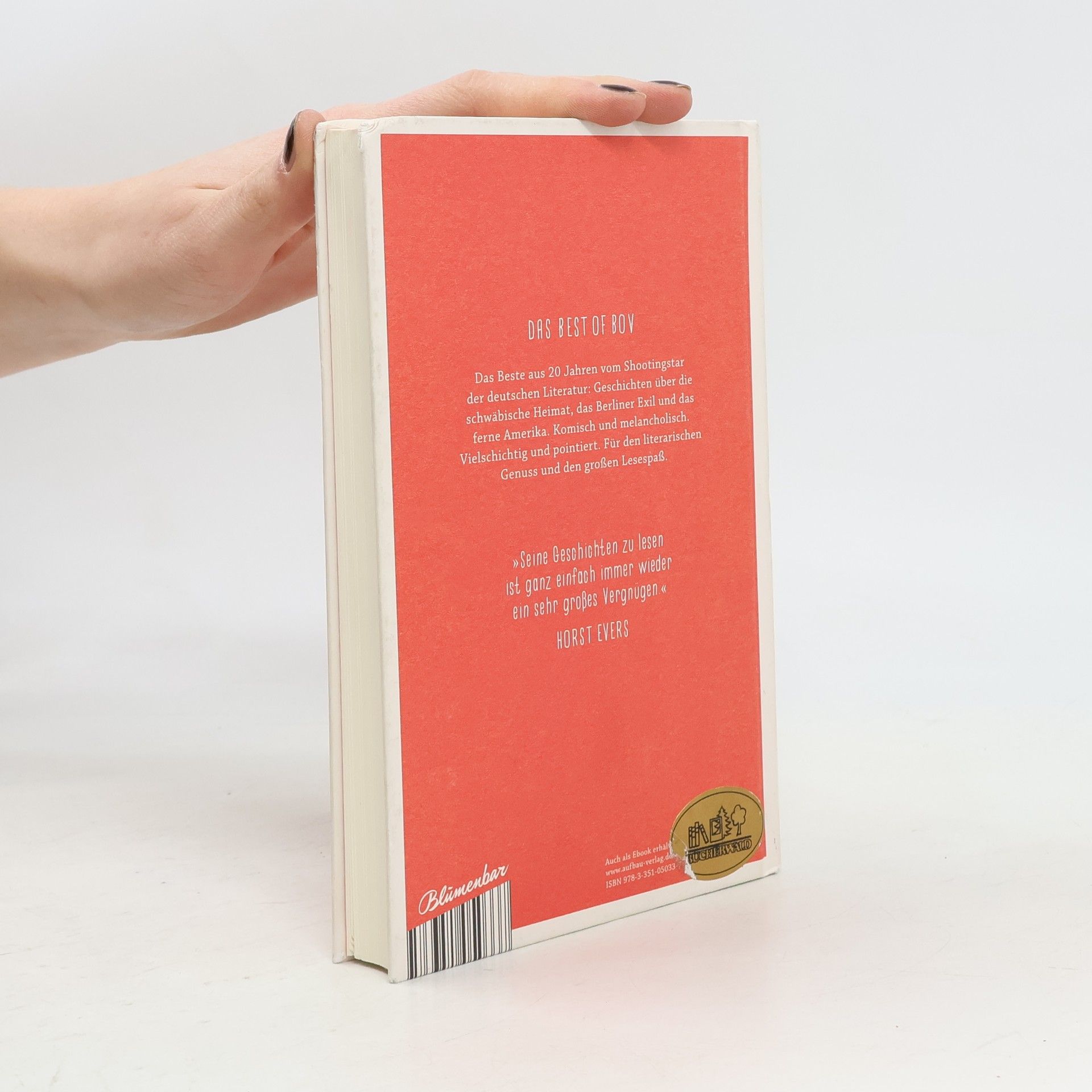 Das Best of Bov. Das Beste aus 20 Jahren vom Shootingstar der deutschen Literatur: Geschichten über die schwäbische Heimat, das Berliner Exil und das ferne Amerika. Komisch und melancholisch. Vielschichtig und pointiert. Für den literarischen Genuss und den großen Lesespaß. „Seine Geschichten zu lesen ist ganz einfach immer wieder ein sehr großes Vergnügen.“ Horst Evers. Gerade als seine Mutter den Führerschein macht, lässt der Gemeinderat eine Fußgängerampel aufstellen, mit fatalen Folgen für Mensch und Tier. Und ausgerechnet während des Urlaubs mit seiner Freundin in einem amerikanischen Nationalpark zieht ein heftiger Sturm auf. Und mitten im Zug auf halber Strecke zum Satireabend nach Frankfurt stürzen die Zwillingstürme ein. Egal ob Mütter oder Söhne, Lokaljournalisten oder Bankdirektoren, Münzsammler oder Apotheker - die Figuren in Bov Bjergs Geschichten haben eins gemeinsam: Für ihren Lebensweg gibt es keinen Verkehrsfunk. Schwäbische Alb, Berlin, Amerika. Das sind ihre Koordinaten. Aber was unterwegs passiert, damit müssen sie irgendwie allein fertig werden. Mit großer Einfühlsamkeit spürt Bov Bjerg den kleinen und großen Schicksalsschlägen des Lebens nach und sorgt mit seinem besonderen Humor dafür, dass man am Ende trotzdem lacht. Die in diesem Buch veröffentlichten Geschichten waren bis auf eine in dem E-Book „Ohne Brille kann ich recht und links nicht unterscheiden“ enthalten.