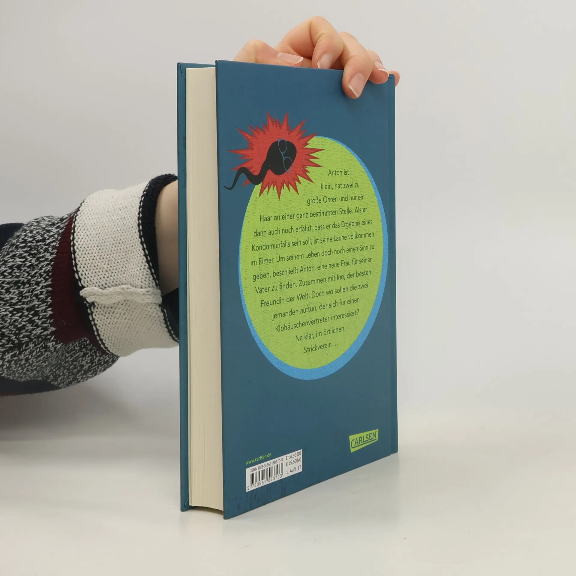 Anton ist klein, bebrillt, hat zwei zu große Ohren und nur ein Haar an einer ganz bestimmten Stelle. Jetzt erfährt er auch noch, dass er das Ergebnis eines Kondomunfalls ist. Das hebt seine Laune kein bisschen. Um seinem Leben doch noch Sinn zu geben, beschließt Anton, eine neue Frau für seinen Vater zu finden. Zusammen mit Ine, der besten Freundin der Welt. Doch wo sollen die zwei jemanden auftun, der sich für einen Klohäuschenvertreter interessiert? Na klar, im örtlichen Strickverein …