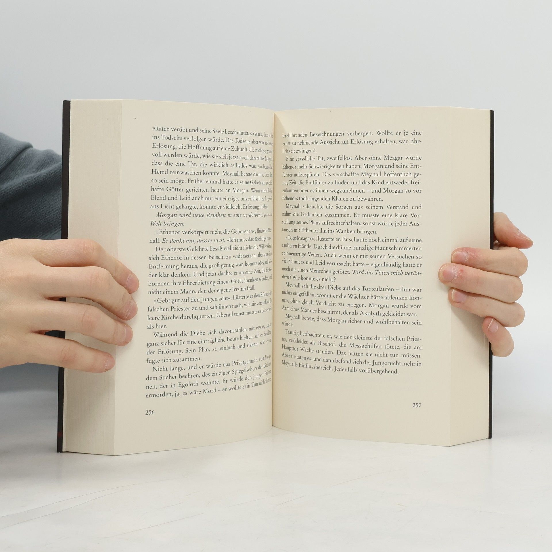 In einer Welt, in der Wahnsinn herrscht, hat das Leben wenig Wert, selbst das eines Gottes. Die Wahnwirker vereinen die größte Macht, da Glaube hier Realität schafft. Sie sind geisteskrank, mit Wahnvorstellungen, die wahr werden, oder Soziopathen, die ihre Überlegenheit ausspielen. Schizophrene spalten sich in mehrere Körper, und Pyromanen entzünden mit einem Gedanken Feuer. Diese Individuen stehen am Rand des Wahnsinns, bereit, ihre Umgebung ins Verderben zu ziehen. Drei Fraktionen kämpfen um das Leben eines Jungen: Ein Tyrann, der ihn als Gott nutzen will, um selbst Macht zu erlangen; ein Trupp Vagabunden, der ihn entführen will, um ein göttliches Lösegeld zu erpressen; und ein Versklaver, der seine Gier nach Liebe mit ihm stillen möchte. Diese grausame Jagd endet mit nur Verlierern, denn die Chroniken des Wahns werden mit Blut geschrieben. „Höchst empfehlenswert!“ – Anthony Ryan, Spiegel-Bestseller-Autor. „Ein verstörender und origineller Fantasy-Roman!“ – Publishers Weekly. „Es gibt nicht viele Fantasy-Romane, die so intelligent, ambitioniert und exzellent geschrieben sind!“ – BOOKLIST.