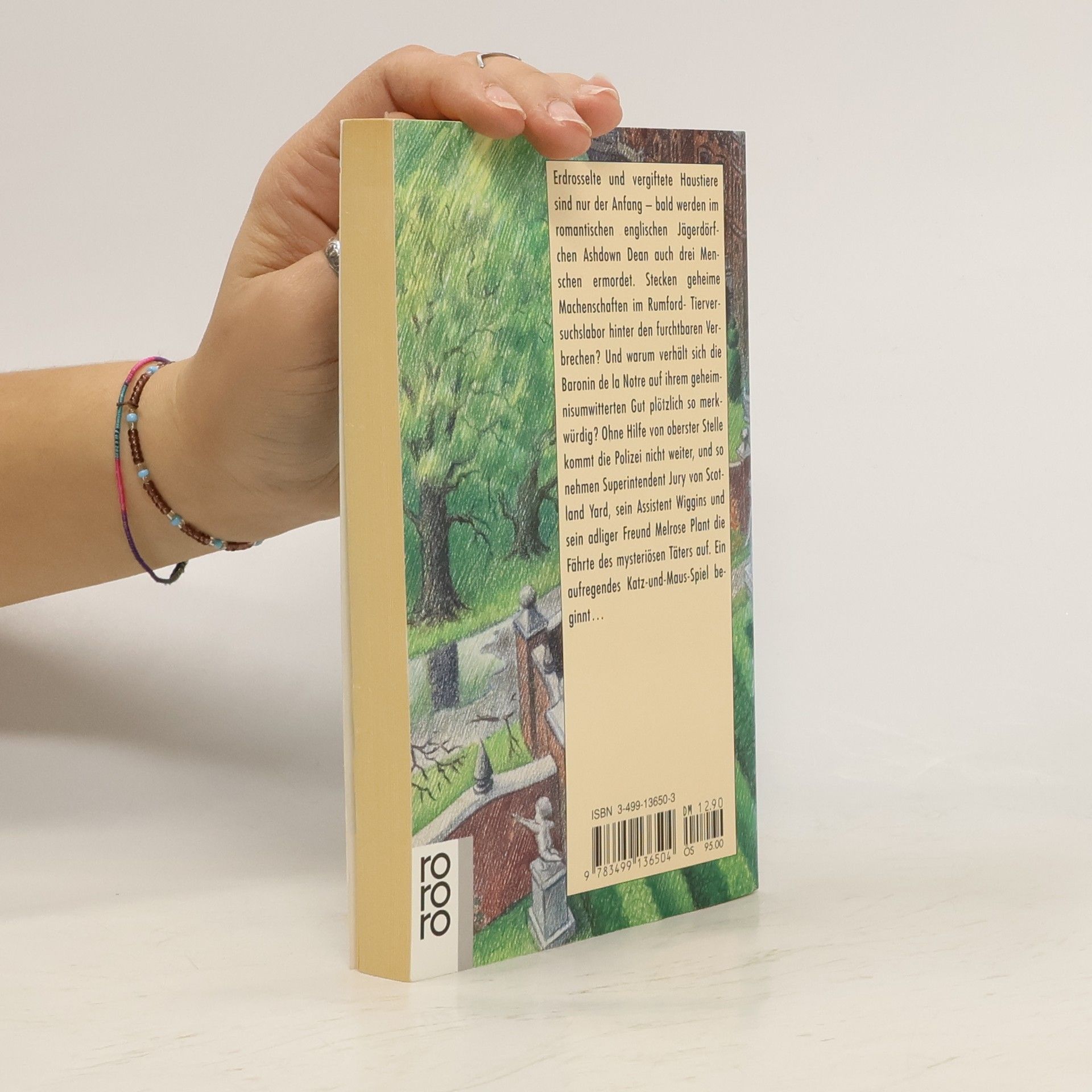 Erdrosselte und vergiftete Haustiere sind nur der Anfang - bald werden im romantischen englischen Jägerdörfchen Ashdown Dean auch drei Menschen ermordet. Stecken geheime Machenschaften im Rumford-Tierversuchslabor hinter den furchtbaren Verbrechen ? Und warum verhält sich die Baronin de la Notre auf ihrem geheimnisumwitterten Gut plötzlich so merkwürdig ? Ohne Hilfe von oberster Stelle kommt die Polizei nicht weiter, und so nehmen Superintendent Jury von Scotland Yard, sein Assistent Wiggins und sein adliger Freund Melrose Plant die Fährte des mysteriösen Täters auf. Ein aufregendes Katz-und Maus-Spiel beginnt.