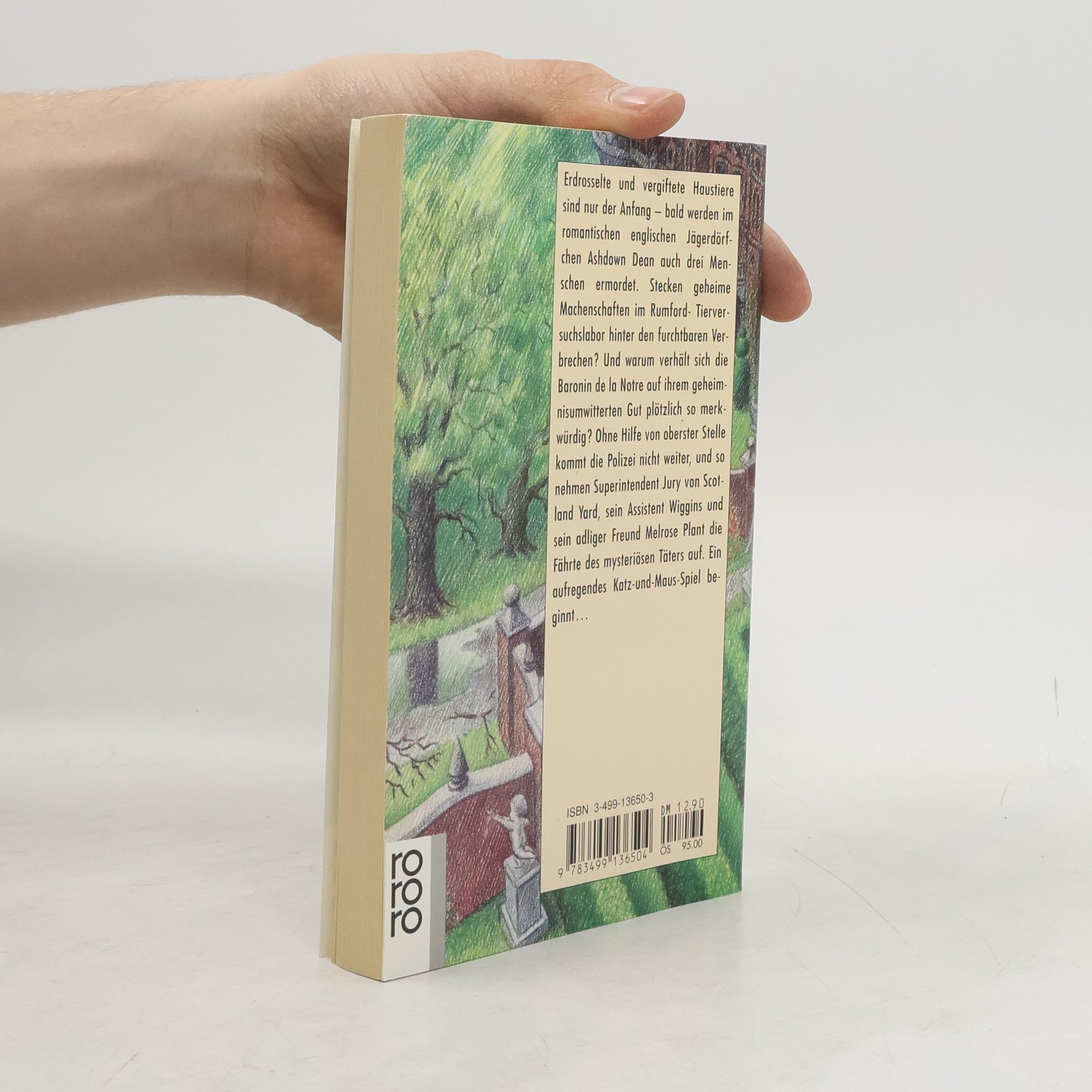 Erdrosselte und vergiftete Haustiere sind nur der Anfang - bald werden im romantischen englischen Jägerdörfchen Ashdown Dean auch drei Menschen ermordet. Stecken geheime Machenschaften im Rumford-Tierversuchslabor hinter den furchtbaren Verbrechen ? Und warum verhält sich die Baronin de la Notre auf ihrem geheimnisumwitterten Gut plötzlich so merkwürdig ? Ohne Hilfe von oberster Stelle kommt die Polizei nicht weiter, und so nehmen Superintendent Jury von Scotland Yard, sein Assistent Wiggins und sein adliger Freund Melrose Plant die Fährte des mysteriösen Täters auf. Ein aufregendes Katz-und Maus-Spiel beginnt.