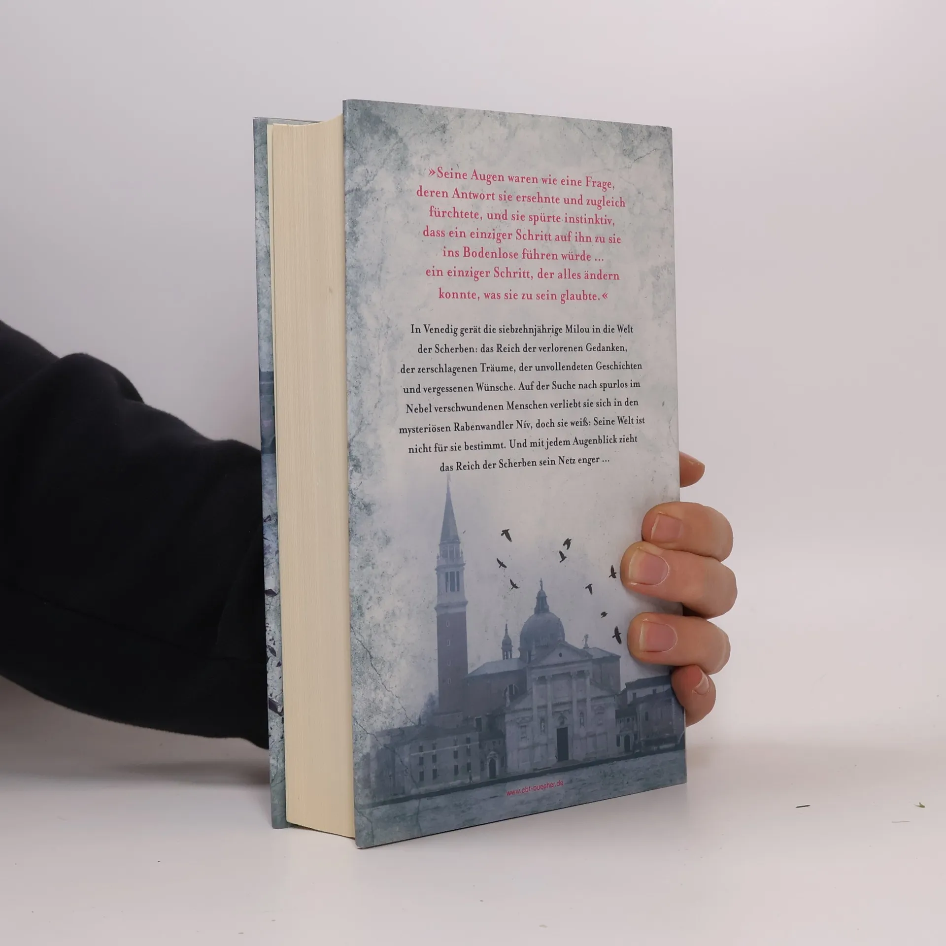 »Seine Augen waren wie eine Frage, deren Antwort sie ersehnte und zugleich fürchtete, und sie spürte instinktiv, dass ein einziger Schritt auf ihn zu sie ins Bodenlose führen würde … ein einziger Schritt, der alles ändern konnte, was sie zu sein glaubte.«In Venedig gerät die siebzehnjährige Milou in die Welt der Scherben: das Reich der verlorenen Gedanken, der zerschlagenen Träume, der unvollendeten Geschichten und vergessenen Wünsche. Auf der Suche nach spurlos im Nebel verschwundenen Menschen verliebt sie sich in den mysteriösen Rabenwandler Nív, doch sie weiß: Seine Welt ist nicht für sie bestimmt. Und mit jedem Augenblick zieht das Reich der Scherben sein Netz enger …