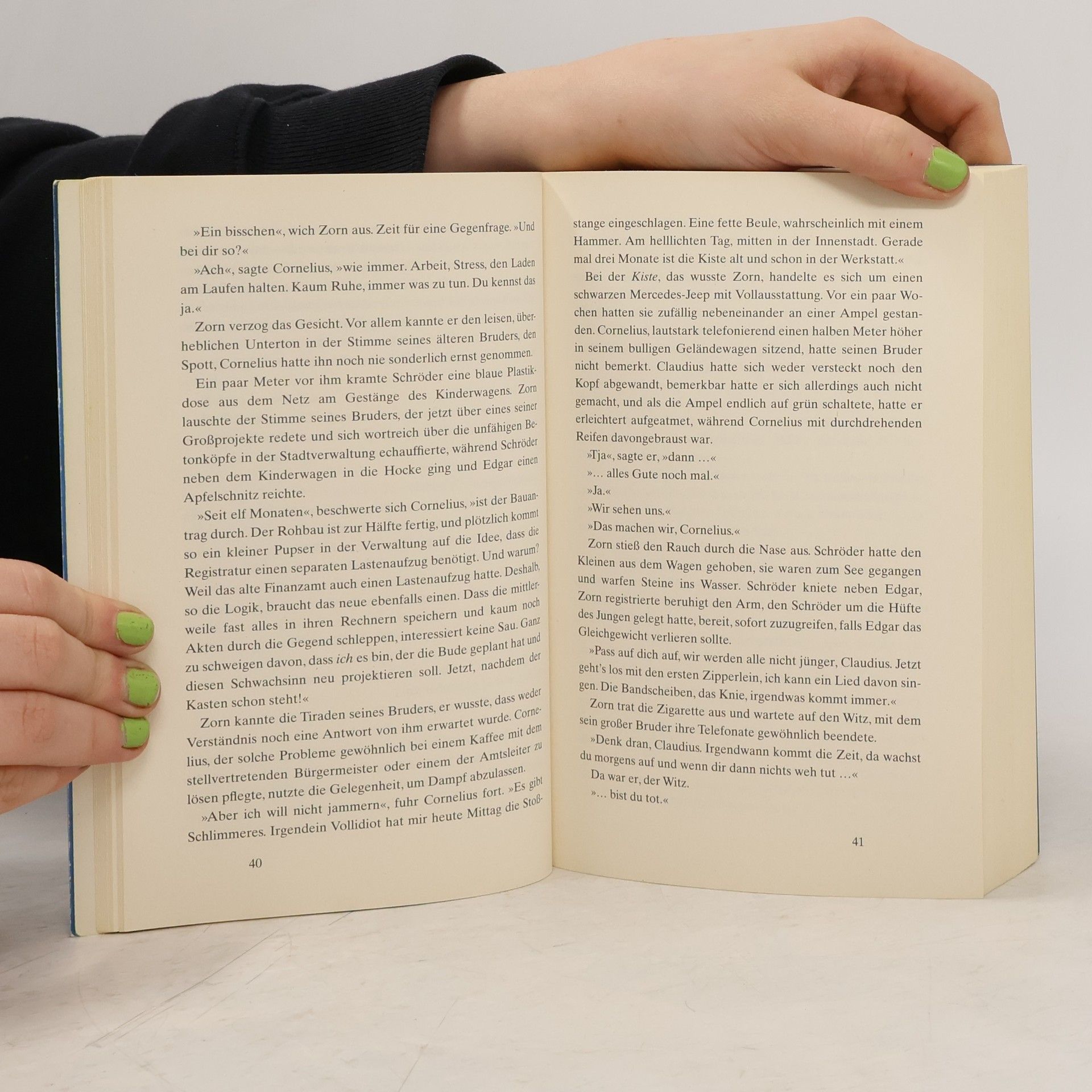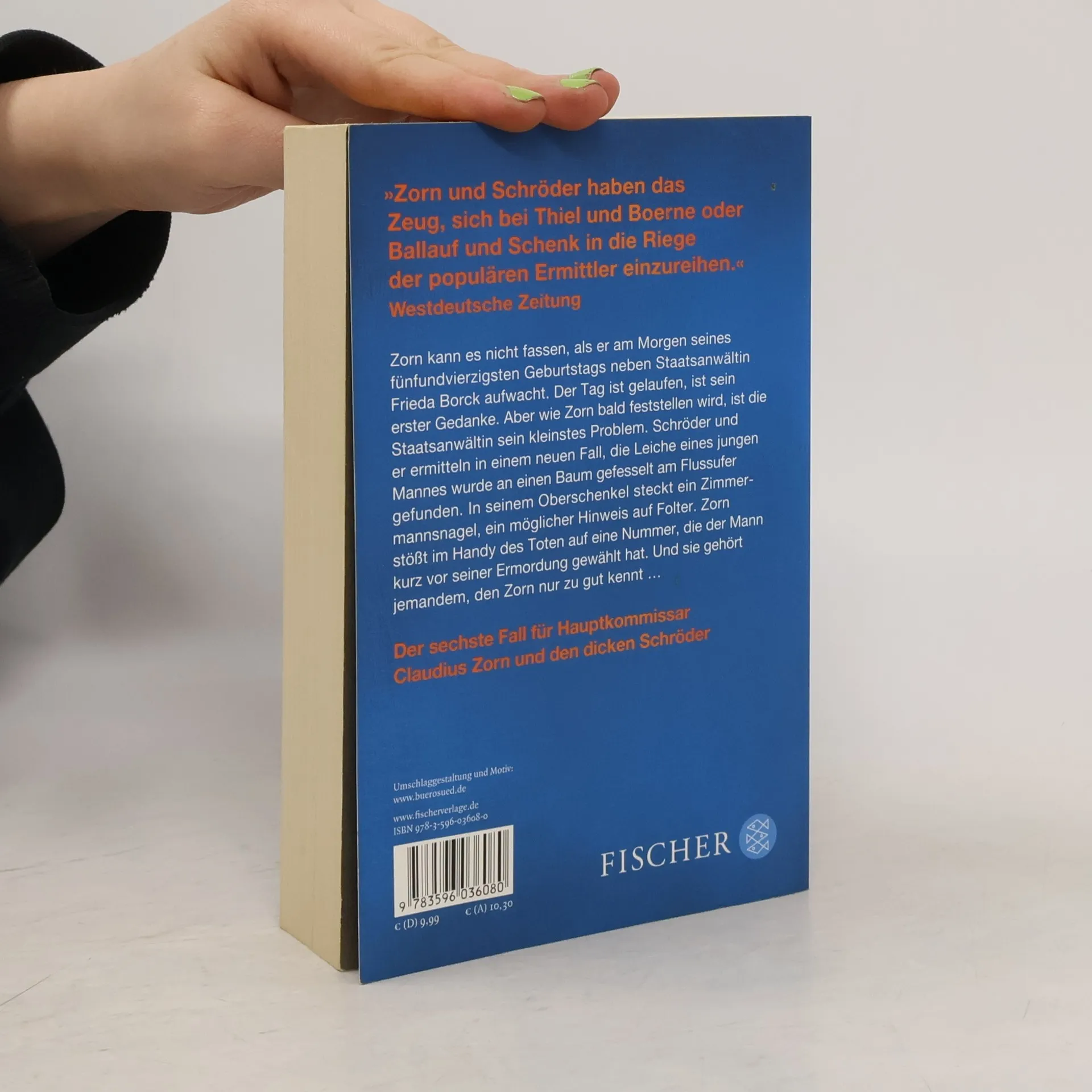 Hauptkommissar Claudius Zorn und sein Partner Schröder stehen vor ihrem schwierigsten Fall, der Zorn alles abverlangt. Am Morgen seines fünfundvierzigsten Geburtstags wacht Zorn neben Staatsanwältin Frieda Borck auf und kann es kaum fassen. Dies führt zu peinlichen Begegnungen im Präsidium, während Zorn wie ein verliebter Teenager auf Antworten auf seine SMS wartet. Doch ein viel gravierenderes Problem wartet auf ihn: Sie ermitteln in einem neuen Fall, bei dem die Leiche eines jungen Mannes an einen Baum gefesselt am Flussufer gefunden wird. Ein Zimmermannsnagel im Oberschenkel deutet auf Folter hin. Schröder fordert Zorn auf, die Anruferliste des Opfers zu überprüfen. Zorn, abgelenkt, kümmert sich erst spät darum und stößt auf etwas, das er lieber nie gefunden hätte. Der Tote hatte kurz vor seinem Tod eine Nummer gewählt, die Zorn bekannt ist, und plötzlich sieht er sich einem unlösbaren moralischen Dilemma gegenüber. Dies ist der sechste Fall für Hauptkommissar Zorn und Schröder, die auch als Fernseh-Stars bekannt sind. Alle Bände der Zorn-Reihe wurden mit Stephan Luca und Axel Ranisch in den Hauptrollen fürs Fernsehen verfilmt.