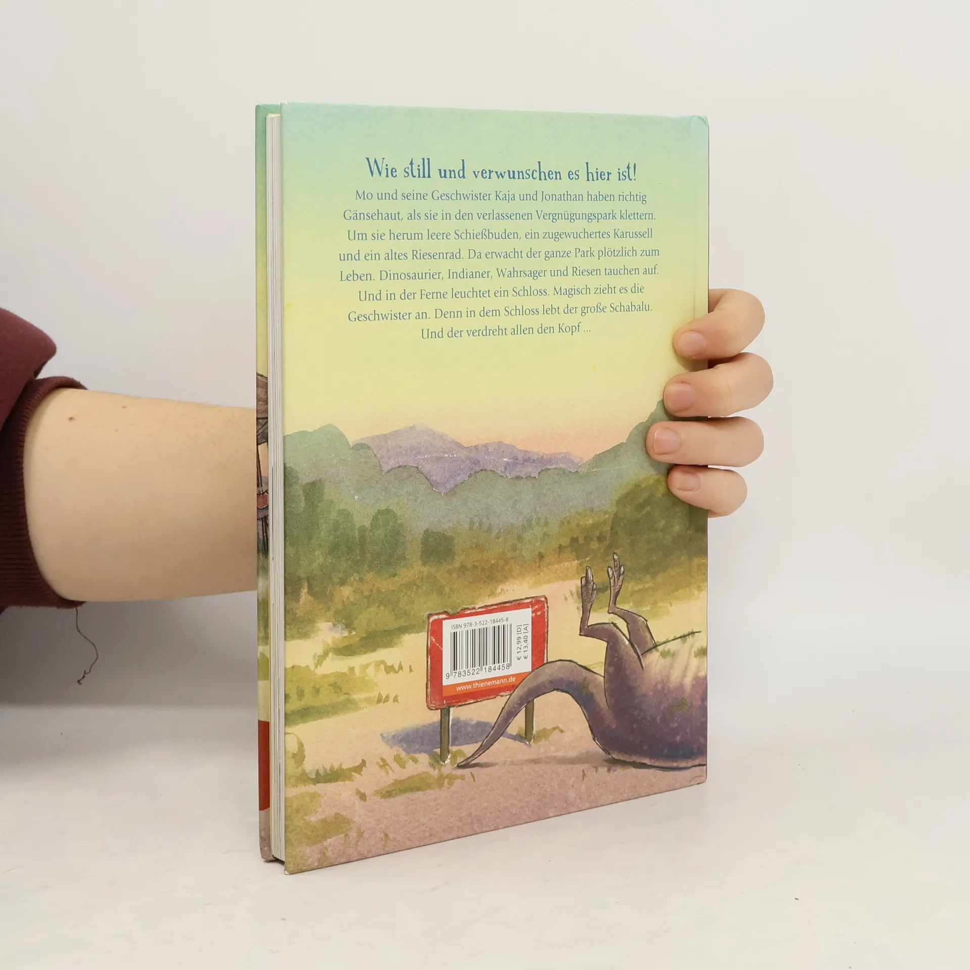 Spannende Abenteuergeschichte vom Autor von „Wir sind nachher wieder da, wir müssen kurz nach Afrika“. Für Mädchen und Jungen ab 6 Jahren. Wie still und verwunschen es hier ist! Mo und seine Geschwister Kaja und Jonathan haben richtig Gänsehaut, als sie in den verlassenen Vergnügungspark klettern. Um sie herum leere Schießbuden, ein zugewuchertes Karussell und ein altes Riesenrad. Doch so verlassen ist der Park gar nicht, denn plötzlich tauchen Dinosaurier, Indianer, Wahrsager und Riesen auf. Und in der Ferne leuchtet ein Schloss. Magisch zieht es die Geschwister an. Denn in dem Schloss lebt der große Schabalu. Und der verdreht allen den Kopf ...