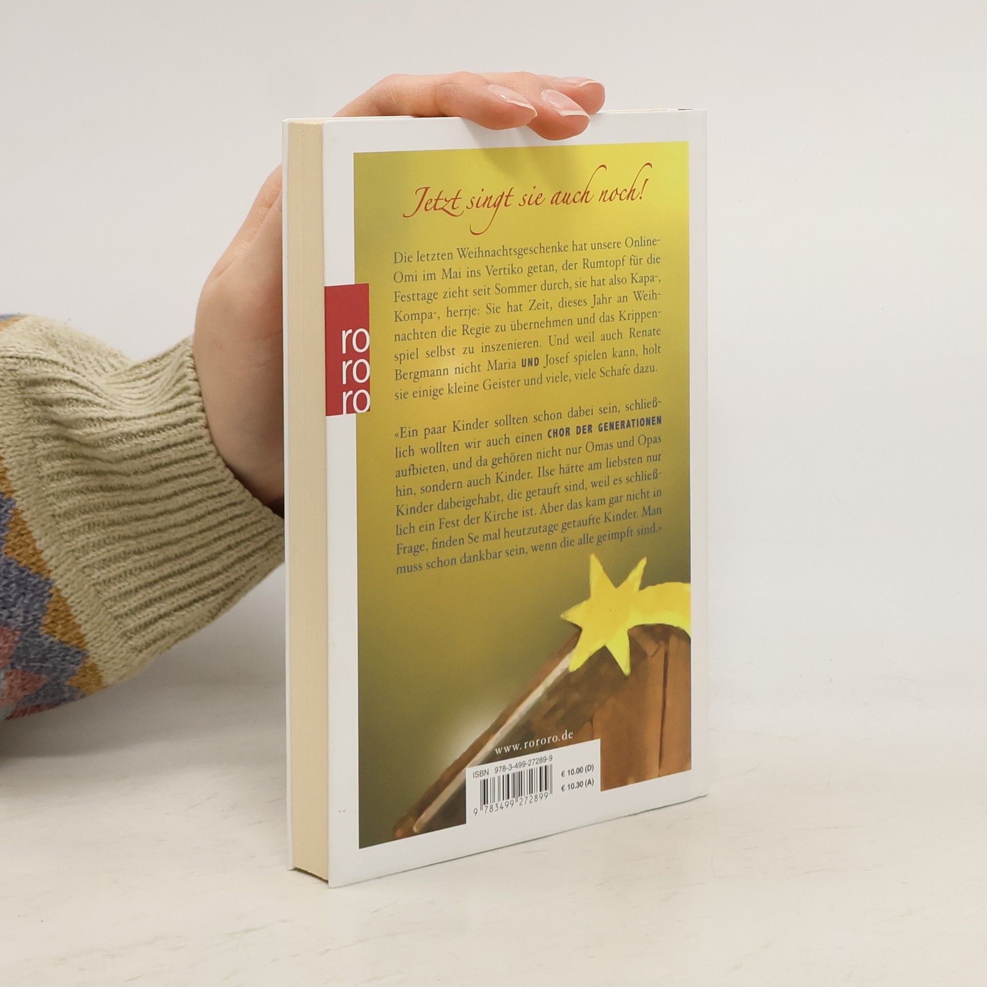 Jetzt singt sie auch noch! Die letzten Weihnachtsgeschenke hat unsere Online-Omi im Mai ins Vertiko getan, der Rumtopf für die Festtage zieht seit Sommer durch, sie hat also Kapa-, Kompa, herrje: Sie hat Zeit, dieses Jahr an Weihnachten die Regie zu übernehmen und das Krippenspiel selbst zu inszenieren. Und weil auch Renate Bergmann nicht Maria UND Josef spielen kann, holt sie ein paar kleine Geister und viele, viele Schafe dazu. «Ein paar Kinder sollten schon dabei sein, schließlich wollten wir auch einen Chor der Generationen aufbieten, und da gehören nicht nur Omas und Opas hin, sondern auch Kinder. Ilse hätte am liebsten nur Kinder dabei gehabt, die getauft sind, weil es schließlich ein Fest der Kirche ist. Aber das kam gar nicht in Frage, finden Se mal heutzutage getaufte Kinder. Man muss schon dankbar sein, wenn die alle geimpft sind.»