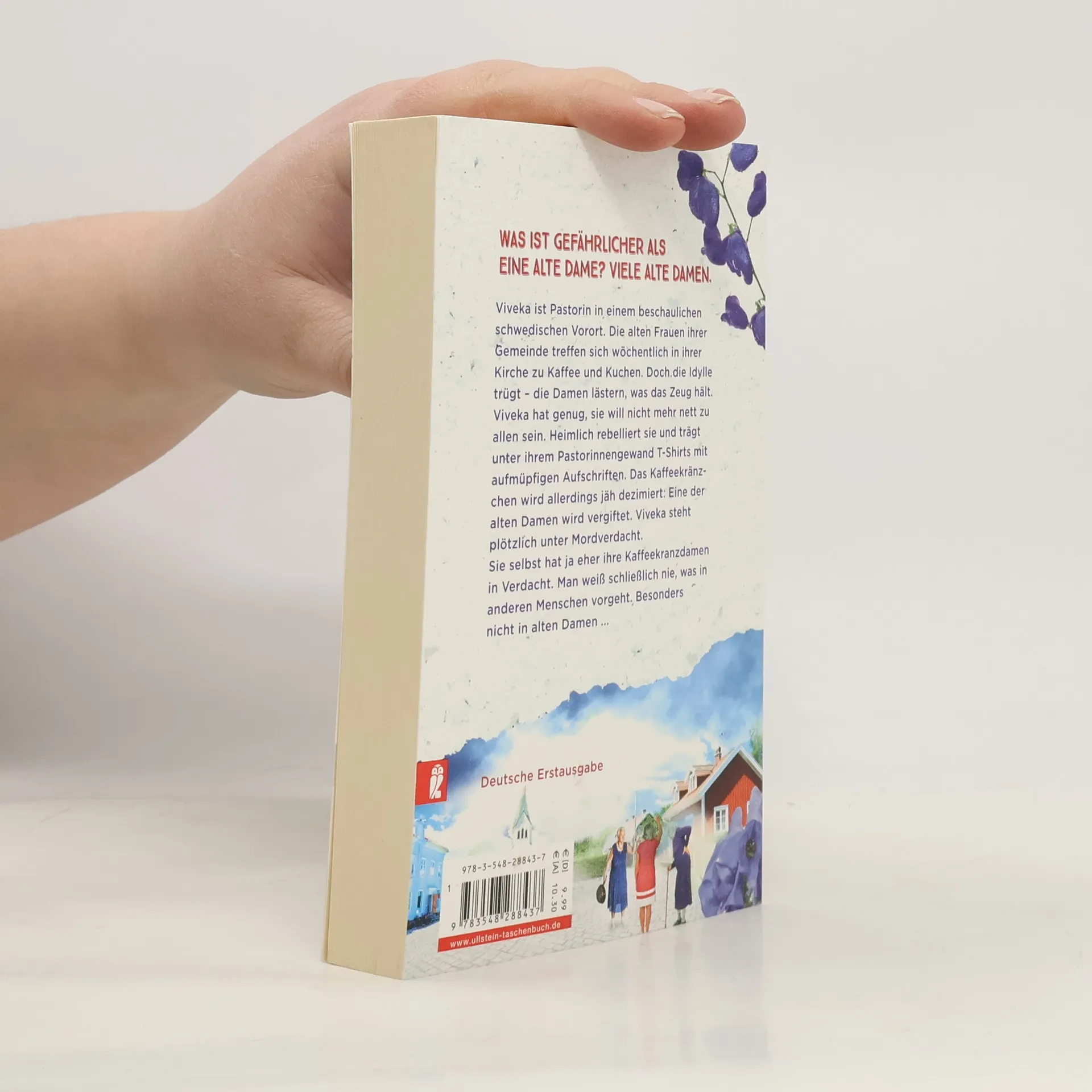 Was ist gefährlicher als eine alte Dame? Viele alte Damen. Viveka ist Pastorin in einem beschaulichen schwedischen Vorort. Die alten Frauen ihrer Gemeinde treffen sich wöchentlich in ihrer Kirche zu Kaffee und Kuchen. Doch die Idylle trügt - die Damen lästern, was das Zeug hält. Viveka hat genug, sie will nicht mehr nett zu allen sein. Heimlich rebelliert sie und trägt unter ihrem Pastorinnengewand T-Shirts mit aufmüpfigen Aufschriften. Das Kaffeekränzchen wird allerdings jäh dezimiert: Eine der alten Damen wird vergiftet. Viveka steht plötzlich unter Mordverdacht. Sie selbst hat ja eher ihre Kaffeekranzdamen in Verdacht. Man weiß schließlich nie, was in anderen Menschen vorgeht. Besonders nicht in alten Damen ... „Ein tolles Debüt mit hohem Gemütlichkeitsfaktor. Gut geschrieben, unterhaltsam, mit genau der richtigen Dosis Spannung und treffenden Überlegungen darüber, was es bedeutet, eine Frau (oder ein Mann) zu sein, die (oder der) mitten im Leben steht.“ Femina