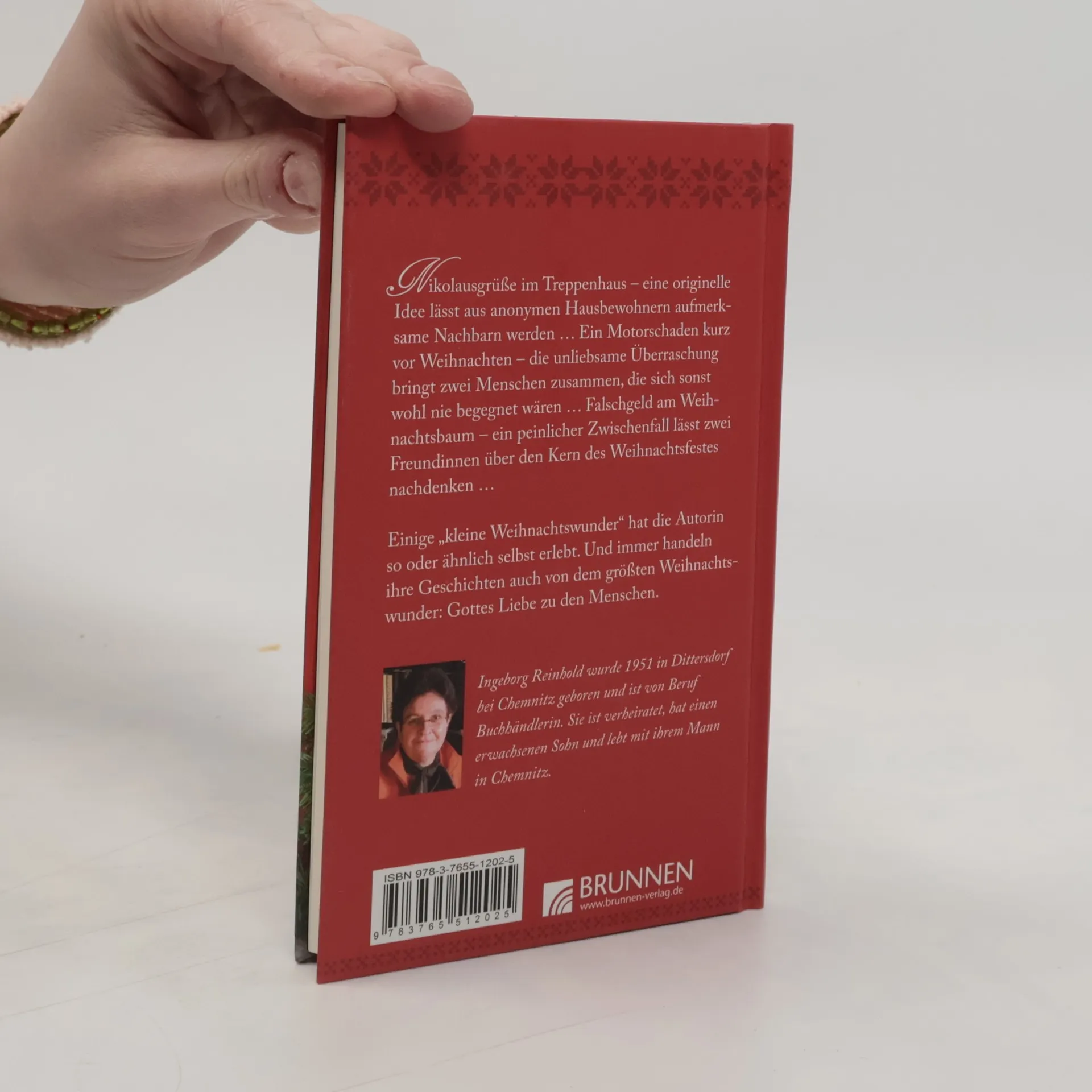 Nikolausgrüße im Treppenhaus eine originelle Idee lässt aus anonymen Hausbewohnern aufmerksame Nachbarn werden Ein Motorschaden kurz vor Weihnachten die unliebsame Überraschung bringt zwei Menschen zusammen, die sich sonst wohl nie begegnet wären Falschgeld am Weihnachtsbaum ein peinlicher Zwischenfall lässt zwei Freundinnen über den Kern des Weihnachtsfestes nachdenken Ingeborg Reinhold erzählt von Menschen, die von der Weihnachtsfreude bewegt und verändert werden; die sich beschenken lassen und selbst wieder andere beschenken. Einige „kleine Weihnachtswunder“ hat sie so oder ähnlich selbst erlebt. Und immer handeln ihre Geschichten auch von dem größten Weihnachtswunder: Gottes Liebe zu den Menschen.