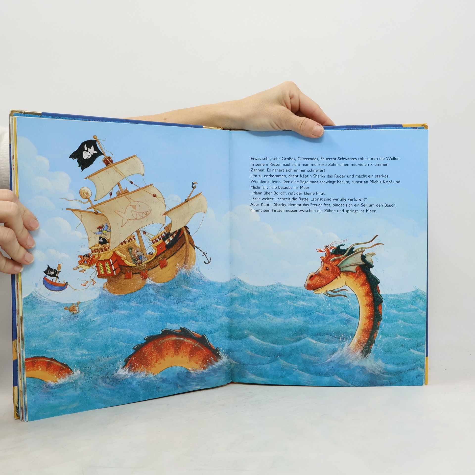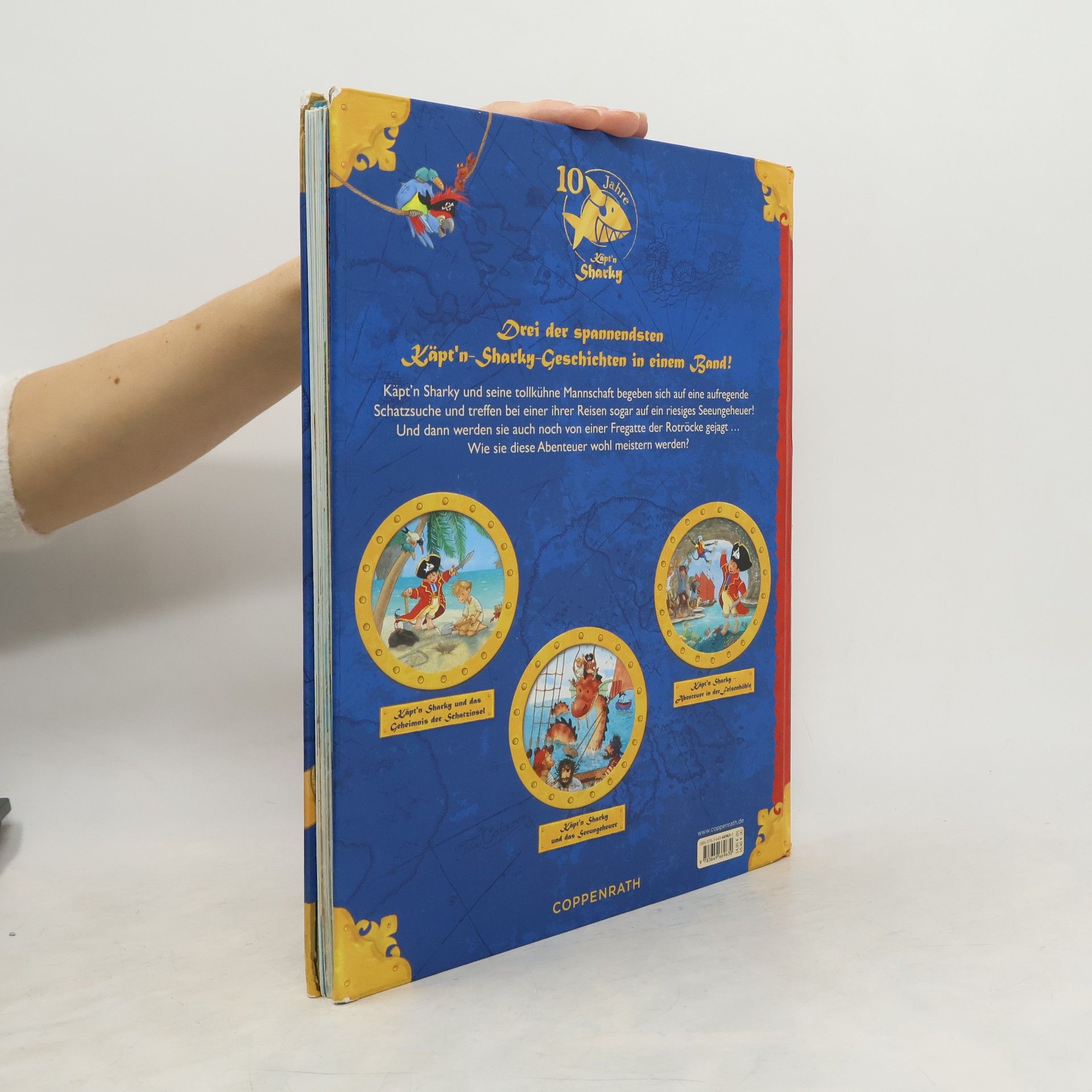Rechtzeitig zum Geburtstag des beliebten Piraten gibt es drei seiner spannendsten Abenteuer in einem Buch – und dazu noch eine piratenstarke Augenklappe zum Verkleiden! Der Jubiläumsband enthält: -Käpt‘n Sharky und das Geheimnis der Schatzinsel -Käpt‘n Sharky und das Seeungeheuer -Käpt‘n Sharky - Abenteuer in der Felsenhöhle Der kleine Pirat und seine tollkühne Mannschaft begeben sich auf eine aufregende Schatzsuche und treffen bei einer ihrer Kaperfahrten sogar auf ein riesiges Untier! Und dann werden sie auch noch von einer Fregatte der Rotröcke gejagt … Wie sie diese Abenteuer wohl meistern werden?