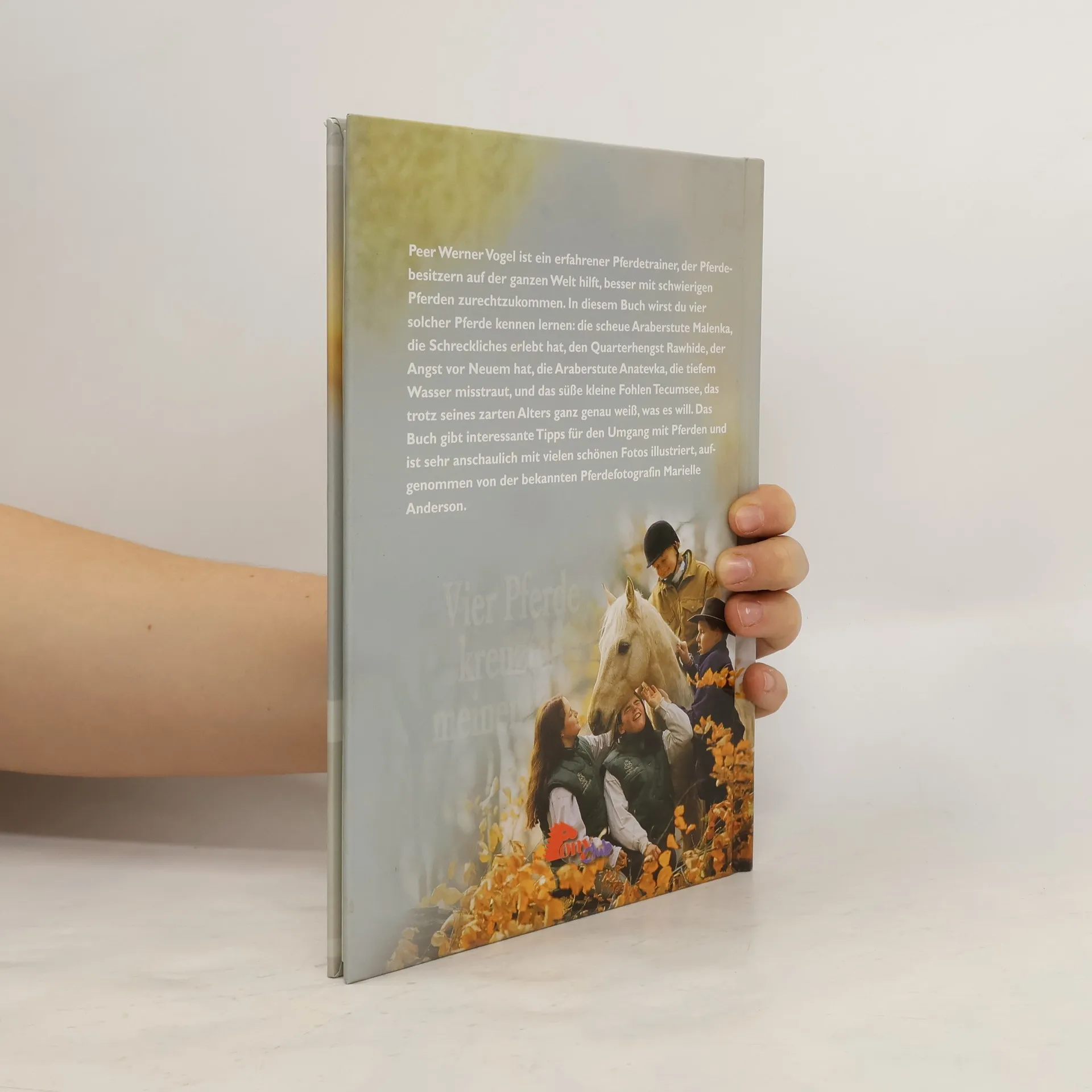 Peer Werner Vogel ist ein erfahrener Pferdetrainer, der Pferdebesitzern auf der ganzen Welt hilft, besser mit ihren schwierigen Pferden zurechtzukommen. In diesem Buch wirst du vier solcher Pferde kennen lernen: die scheue Araberstute Malenka, die Schreckliches erlebt hat, den Quarterhengst Rawhide, der Angst vor Neuem hat, die Araberstute Anatevka, die tiefem Wasser misstraut, und das süße kleine Fohlen Tecumsee, das trotz seines zarten Alters ganz genau weiß, was es will. Das Buch gibt interessante Tipps für den Umgang mit Pferden und ist sehr anschaulich mit vielen schönen Fotos illustriert, aufgenommen von der bekannten Pferdefotografin Marielle Anderson.