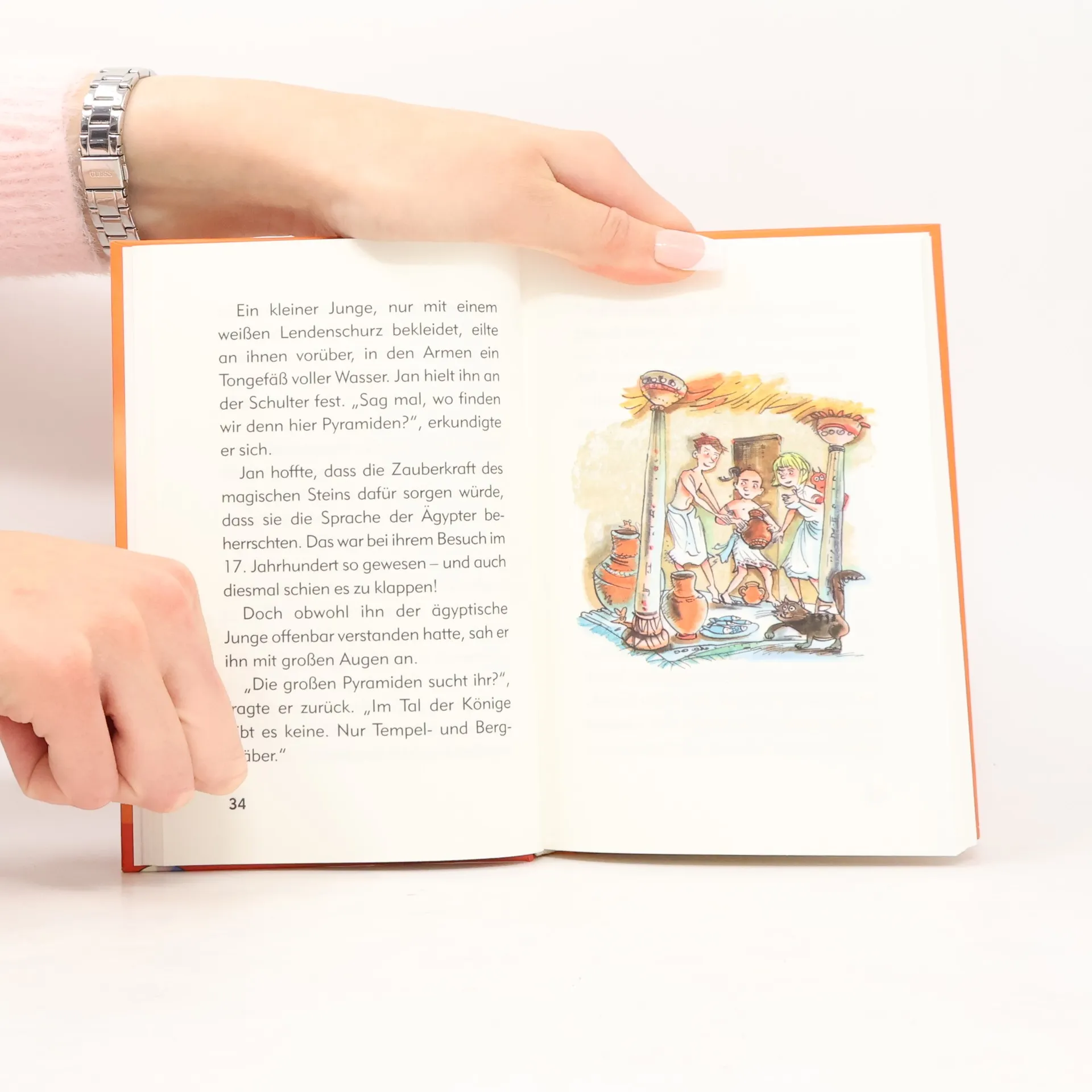 Ein staubiges Tal unter sengender Sonne, flimmernde Luft und hohe, säulenverzierte Tempel: Der magische Stein führt Maya und Jan ins alte Ägypten. Durch ein Versehen geraten sie in ein Felsengrab und werden dort zwischen Gold und Juwelen eingeschlossen. Als sie sich gerade auf die Suche nach einem Ausgang machen wollen, vernehmen sie in der Finsternis der Gruft plötzlich schlurfende Schritte ...§§Begleite Maya und Jan auf ihren abenteuerlichen Reisen quer durch die Zeit. Vergangenheit, Gegenwart, Zukunft - mit dem magischen Stein nur ein paar Buchseiten entfernt!