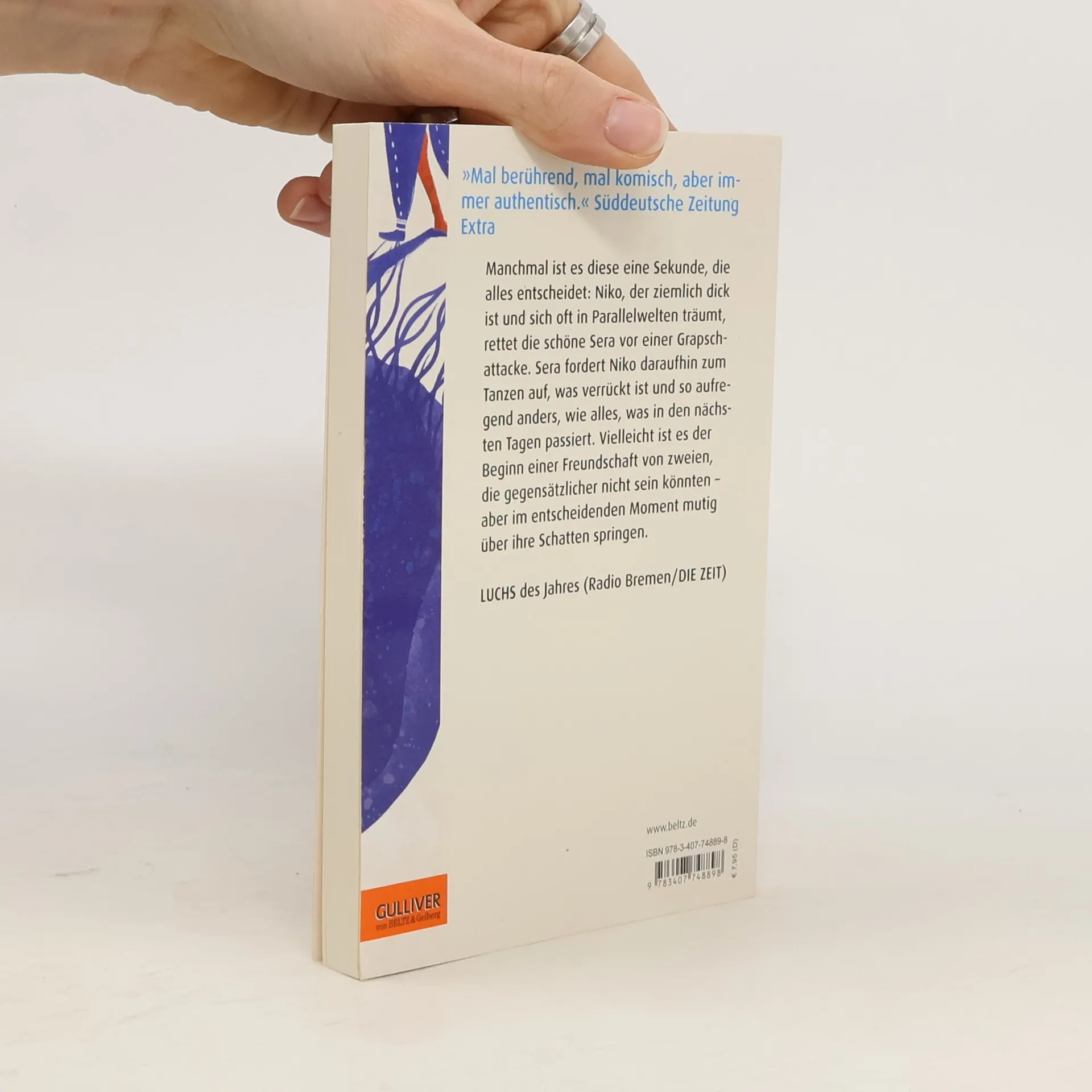 Manchmal ist es diese eine Sekunde, die alles entscheidet: Niko, der ziemlich dick ist und sich oft in Parallelwelten träumt, rettet die schöne Sera vor einer Grapschattacke. Sera fordert Niko daraufhin auf der Klassenfahrt zum Tanzen auf, was verrückt ist und so aufregend anders, wie alles, was in den nächsten Tagen passiert. Vielleicht ist es der Beginn einer Freundschaft von zweien, die gegensätzlicher nicht sein könnten, aber im entscheidenden Moment mutig über ihre Schatten springen.
