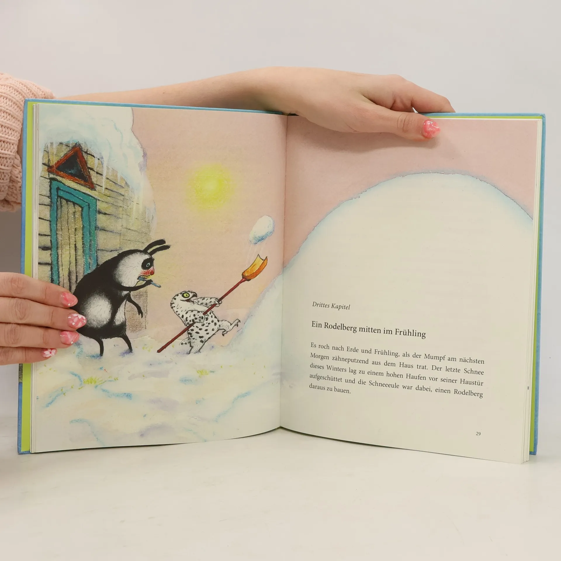 Als der Mumpf in diesem Jahr aus dem Winterschlaf erwacht, ist alles anders als sonst. Denn auf ihn wartet die Schneeeule, die seit Weihnachten sein Freund ist. Ein Frühling mit Freund also! Der Mumpf ist glücklich. Die Schneeeule ist noch sehr jung und hat lauter Flausen im Kopf. Dazu zählen: Mit einer Schneekugel ein Kamel in den Schnee rollen, in einer Badewanne den Berg runterrodeln, unter einem Eiszapfen duschen und zum Schluss ein großes Frühlingsfest feiern. Mit der quirlig-verrückten Schneeeule und dem zurückhaltenden Mumpf hat Annette Herzog zwei warmherzige Figuren geschaffen, die von Ingrid und Dieter Schubert herrlich in Szene gesetzt werden. Am Ende wäre man eigentlich selbst gerne mit Mumpf & Schneeeule befreundet, Tanz auf dem Frühlingsfest inklusive.