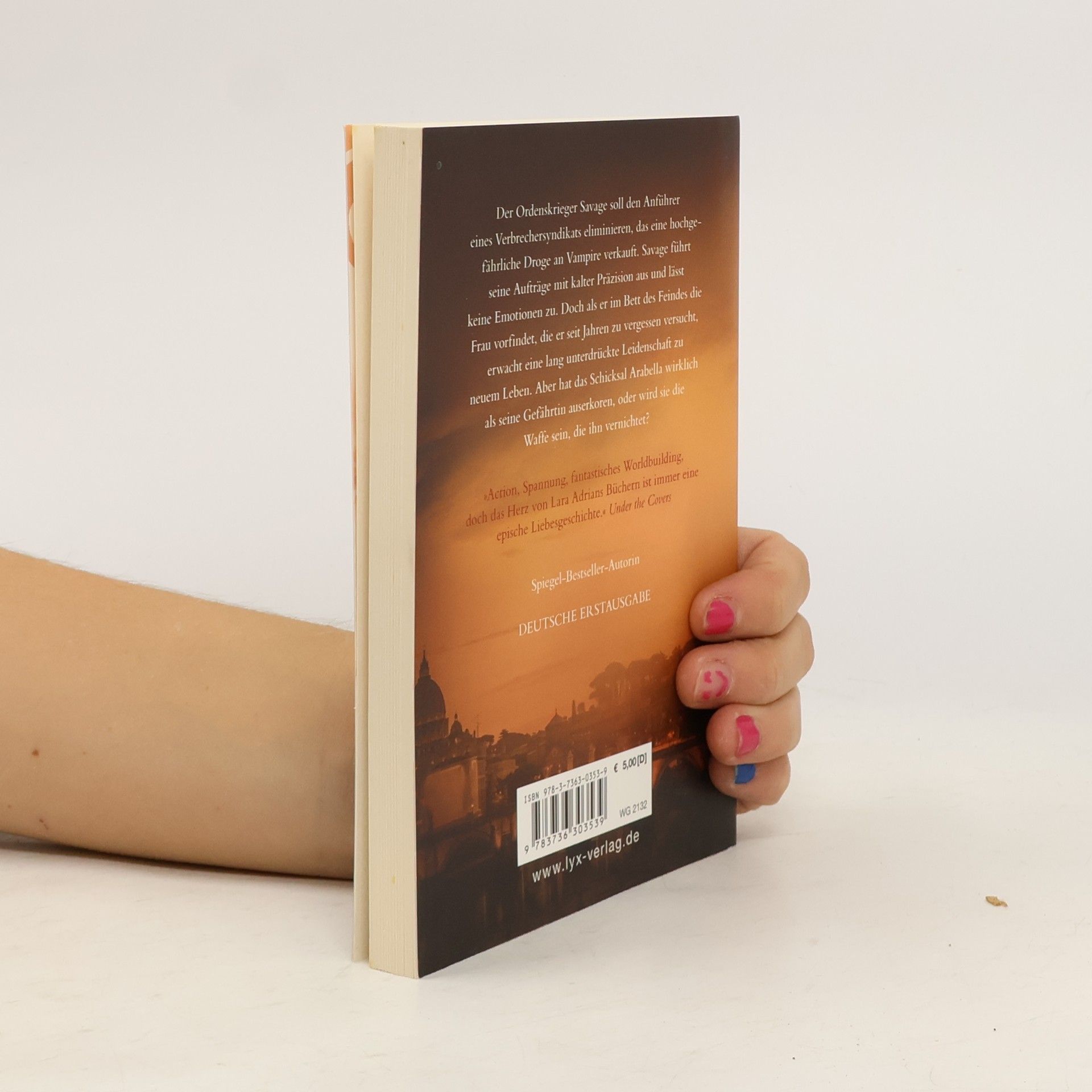 Der Ordenskrieger Savage soll den Anführer eines Verbrechersyndikats eliminieren, das eine hochgefährliche Droge an Vampire verkauft. Savage führt seine Aufträge mit kalter Präzision aus und lässt keine Emotionen zu. Doch als er im Bett des Feindes die Frau vorfindet, die er seit Jahren zu vergessen versucht, erwacht eine lang unterdrückte Leidenschaft zu neuem Leben. Aber hat das Schicksal Arabella wirklich als seine Gefährtin auserkoren, oder wird sie die Waffe sein, die ihn vernichtet? „Action, Spannung, fantastisches Worldbuilding, doch das Herz von Lara Adrians Büchern ist immer eine epische Liebesgeschichte.“ Under the Covers