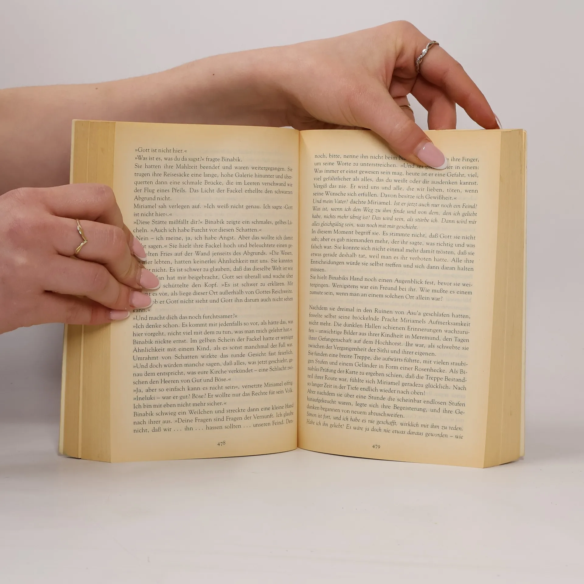 Simon, der mit Prinzessin Miriamel, seiner großen Liebe, heimlich den Stein des Abschieds verlassen hat, will für Prinz Josua die beiden letzten Großen Schwerter gewinnen, Hellnagel, das in König Johans Grab liegen soll, und Leid, das an Elias' Gürtel hängt. Miriamel sucht das Gespräch mit ihrem Vater. Sie glaubt jetzt zu wissen, daß ihn nur blinde Liebe zu seiner verstorbenen Gemahlin, ihrer Mutter, zum Pakt mit dem Sturmkönig getrieben hat, und will versuchen, ihn auf den Boden der Vernunft zurückzuführen. Aber als die beiden den Hochhorst erreichen, ist das Grab leer. Wieder gerät Simon in das entsetzliche Labyrinth, das tief in der Erde unter dem Engelsturm liegt. Dort tauchen auch der verschollene Mönch Cadrach und die Unterirdischen wieder auf. Vor den Toren der Feste erscheint endlich Josuas Heer. Zusammen mit Binabik dringt auch Miriamel in die grausigen Gänge ein. Oben im Turm kommt es zur Konfrontation zwischen Elias, Pryrates dem Priester, Simon und Miriamel. Es erweist sich, daß weder Elias noch König Johan noch Josua noch der alte Ritter Camarisdas sind, was sie zu sein scheinen, und selbst hinter Simon steckt ein Geheimnis, von dem er nichts wußte. Auch die Rolle der drei Schwerter, die nun endlich zusammenkommen, wie es der wahnsinnige Priester Nisses vor 500 Jahren geweissagt hat, ist eine ganz andere, als vermutet.