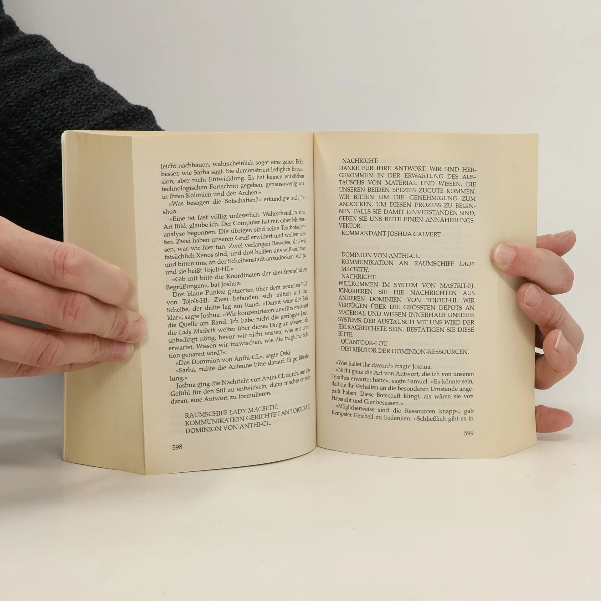 An allen Fronten wird gekämpft: Auf der Erde wütet Quinn Dexter, verfolgt von Louise Kavanagh. Ihr gelingt es, einige mysteriöse und starke Verbündete zu finden, deren Ziele jedoch nicht ganz mit den ihren übereinstimmen. Der Feldzug gegen die Besessenen auf Mortonridge wächst sich zu einer furchtbaren Schlacht aus, wie sie die Menschheit seit 600 Jahren nicht erlebt hat. Und Joshua Calvert und Syrinx brechen mit ihrem Raumschiff zu einer Mission auf, den Schlafenden Gott zu finden, von dem es der Legende nach heißt, daß er allein den Schlüssel des Rätsels kennt, wie man die Besessenen besiegen kann...