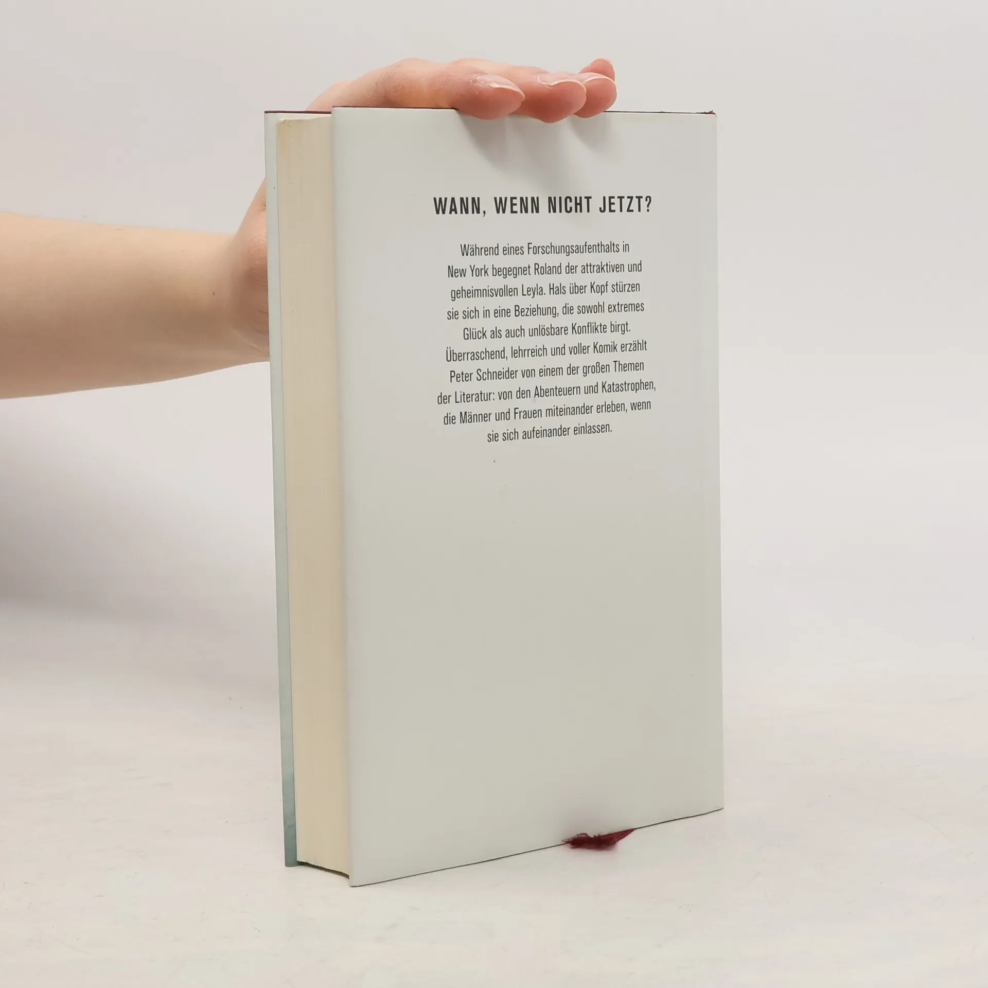 Wann, wenn nicht jetzt? Witwer Roland, ein Privatgelehrter an der NYU, hat Frauen eigentlich abgeschrieben. Doch bei einer Trauerfeier in Manhattan trifft er Leyla, und alles verändert sich. Roland glaubt, die Regeln zu kennen, und ist überzeugt, dass eine Beziehung mit der viel jüngeren Leyla nicht in Frage kommt. Doch sie sieht das anders und zieht ihn in eine Beziehung, die großes Glück, aber auch tiefgreifende Konflikte mit sich bringt. Während er zwischen seinem New Yorker Appartement und seinen Lehrverpflichtungen in Berlin pendelt, hat er Zeit, Leyla zu vermissen, seine Prinzipien zu hinterfragen und über die Liebe nachzudenken. Diese Reflexionen werden durch die Erzählungen seiner Freunde im „Club der Unentwegten“ ergänzt, die ebenfalls von ihren eigenen Liebesabenteuern und -katastrophen berichten. So entfaltet sich ein überraschendes, lehrreiches und unterhaltsames Beziehungspanorama. Peter Schneider behandelt in dieser Geschichte die komplexen Verhältnisse zwischen Männern und Frauen und zeigt, was passiert, wenn sie sich aufeinander einlassen.