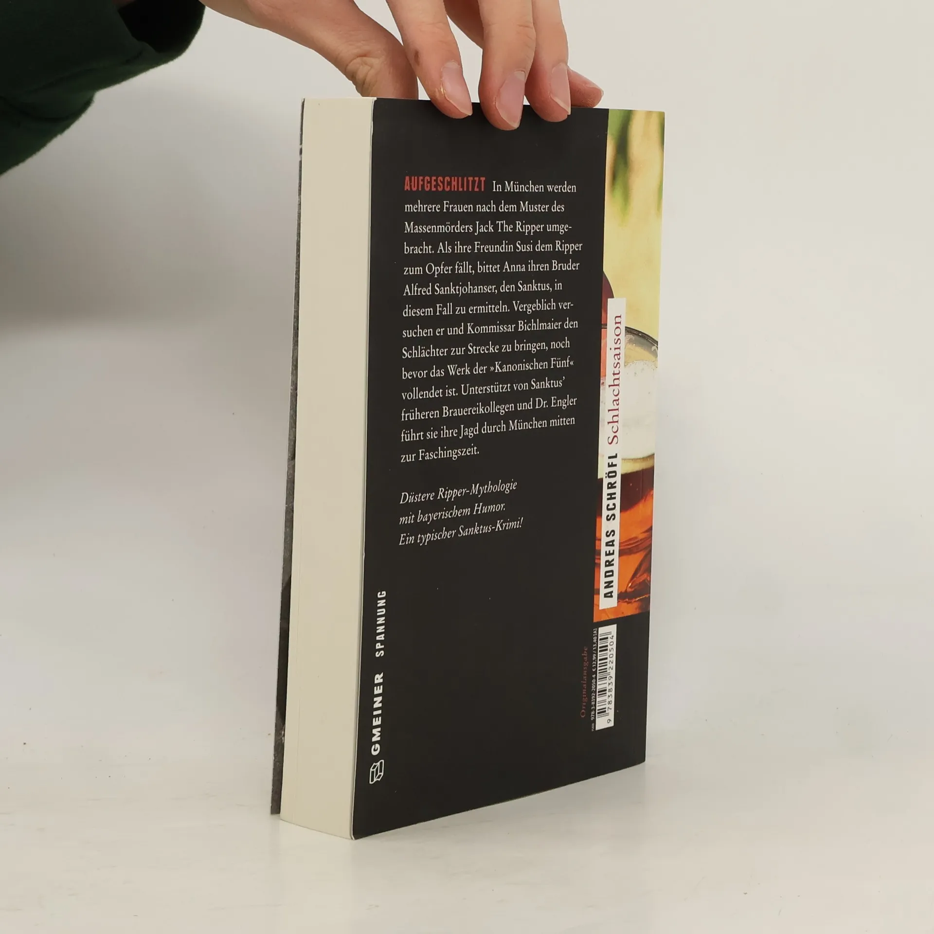 In München werden mehrere Frauen nach dem Muster des Massenmörders Jack The Ripper umgebracht. Als ihre Freundin Susi dem Ripper zum Opfer fällt, bittet Anna ihren Bruder Alfred Sanktjohanser, den Sanktus, in diesem Fall zu ermitteln. Vergeblich versuchen er und Kommissar Bichlmaier den Schlächter zur Strecke zu bringen, noch bevor das Werk der »Kanonischen Fünf« vollendet ist. Unterstützt von Sanktus’ früheren Brauereikollegen und Dr. Engler führt sie ihre Jagd durch München mitten zur Faschingszeit.
